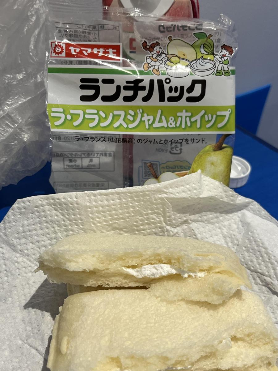 ラ・フランスジャムとホイップクリームがランチパックのパン生地と相性がとても良く、甘さも程よいので美味しかったです。おしゃれな味を楽しめると思います。