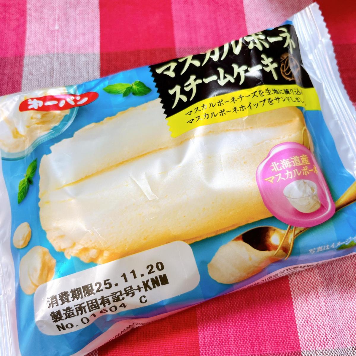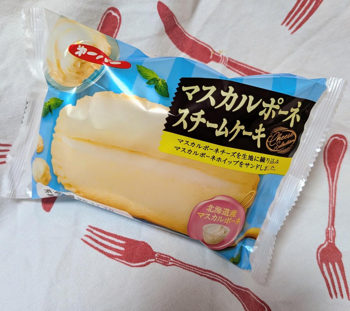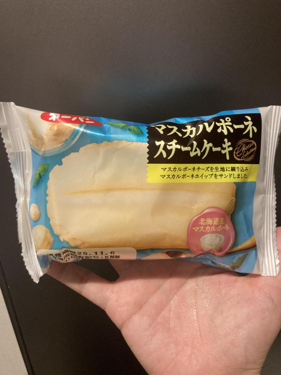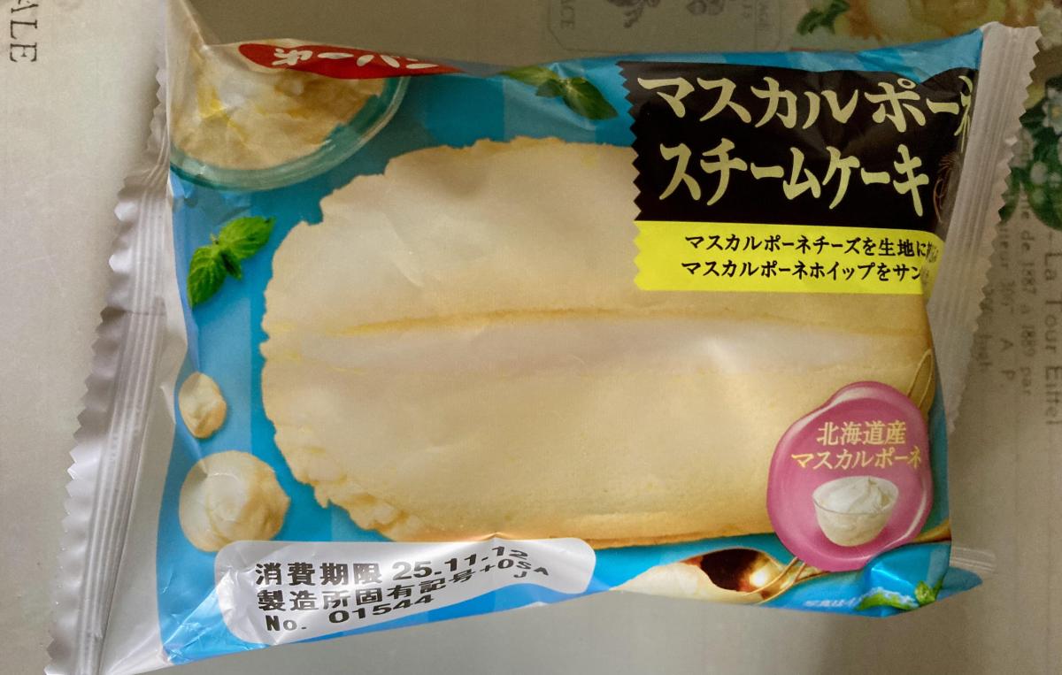 パンコーナーにたくさん並んでいて、気になりました。マスカルポーネスチームケーキということで、おいしそうだなと思い買ってみました。