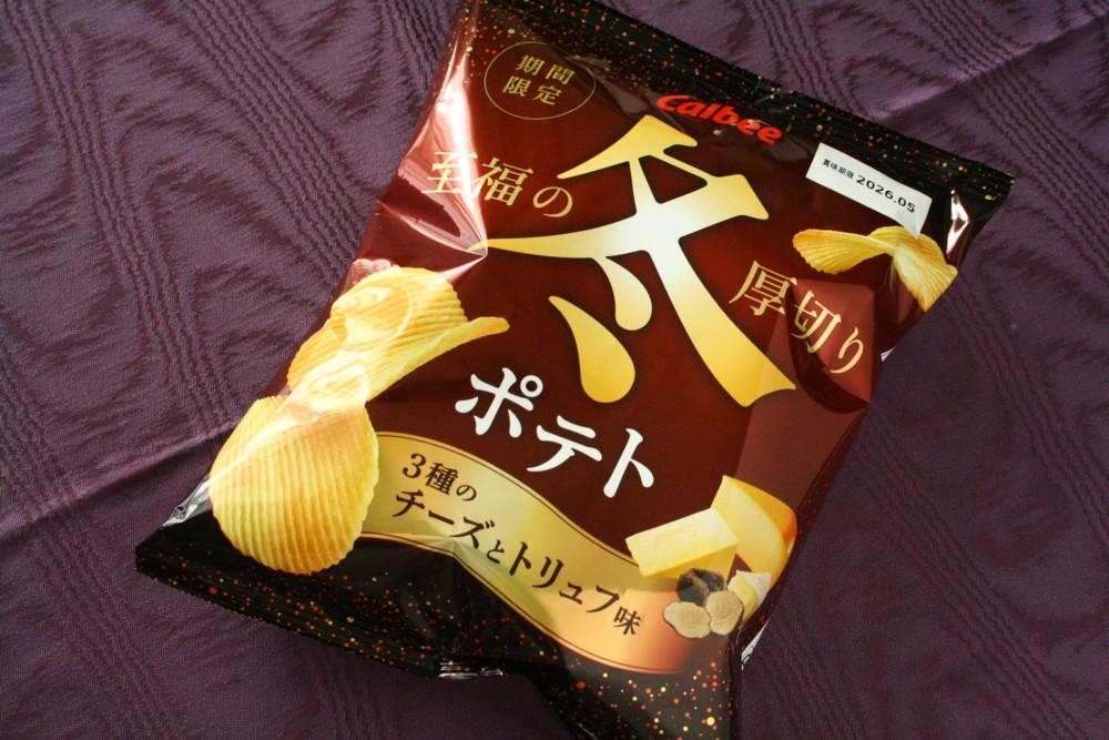 ザクザクしたしっかりした歯応えがある厚切りポテチの期間限定バージョンです。コクあるチーズの味わいに微かなトリュフの風味が加わって、味わい深いです。