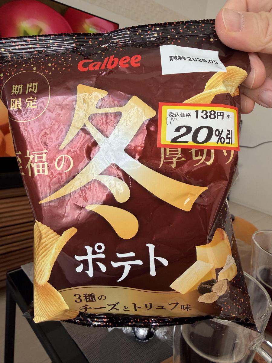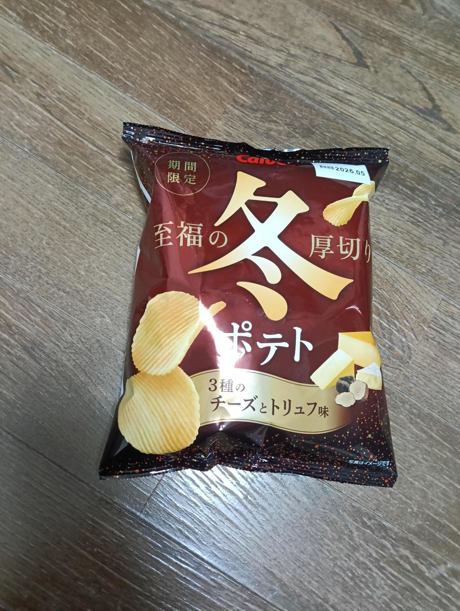 冬ポテトも信頼できるシリーズのひとつです。厚めギザギザカットのザクザク感とチーズのまろやかなコク、トリュフの高貴な香りの良さ。至福のポテチでした。
