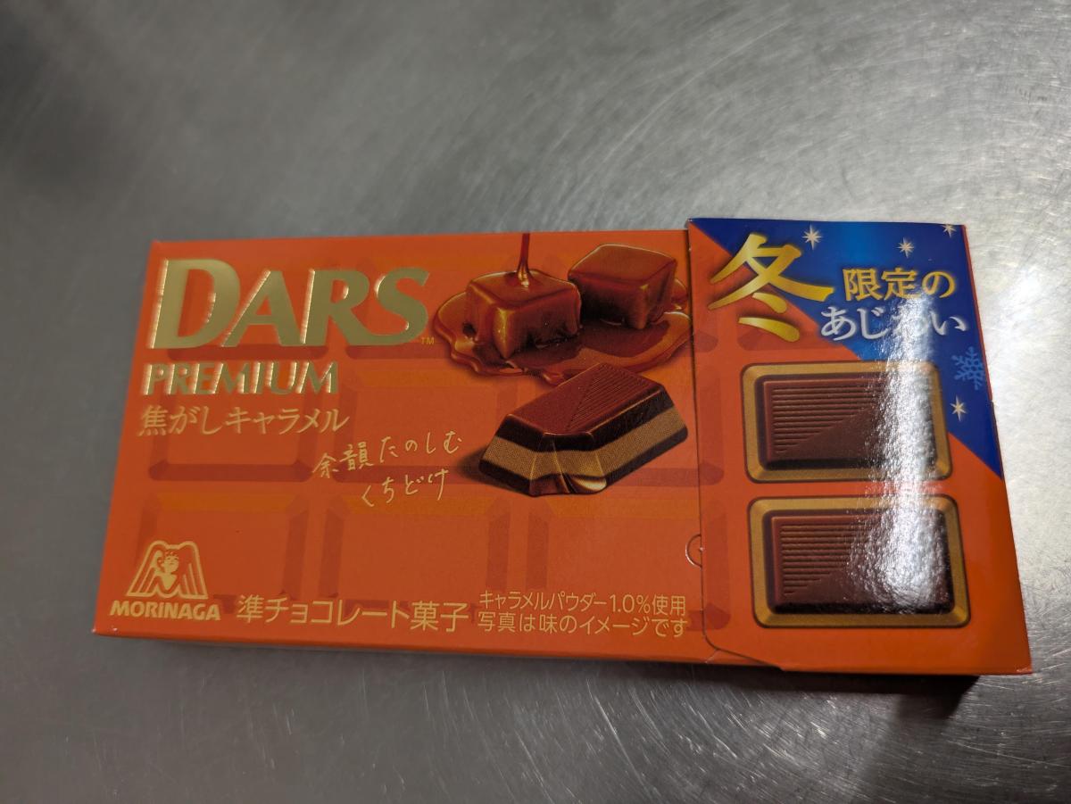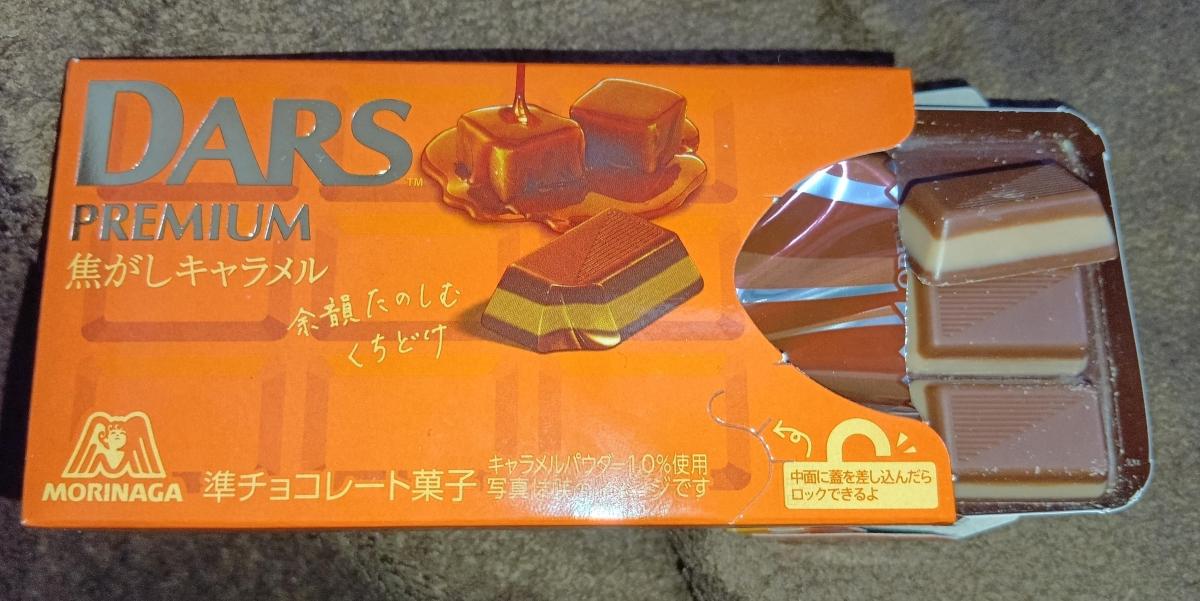 ダースチョコレートの新しい味は、焦がしキャラメルです。オレンジ色のパッケージにとろけるキャラメルが、おいしそうです。
