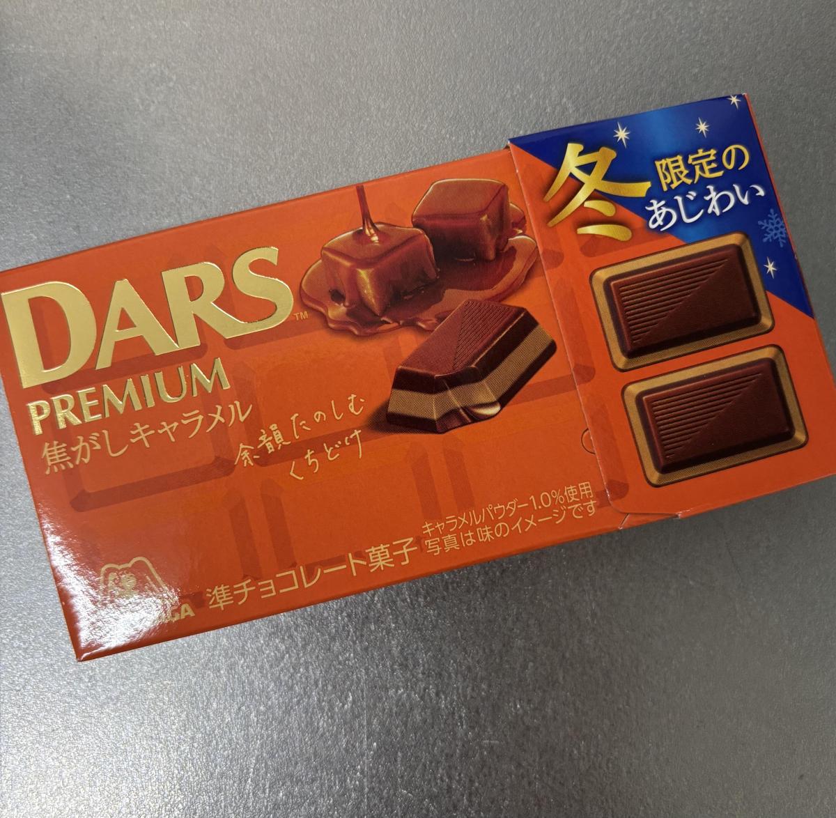 ダースプレミアムに焦がしキャラメル味が出ていたので気になり購入してみました。パッケージの色合いもいい感じです。開けると、キャラメルの香りがたっぷりと感じました。チョコは2層になっていました。チョコレートはやさしいミルクのコクが感じ甘めですが、焦がしキャラメルの程よい苦みと、キャラメルの甘い味わいでバランスがよく美味しかったです。