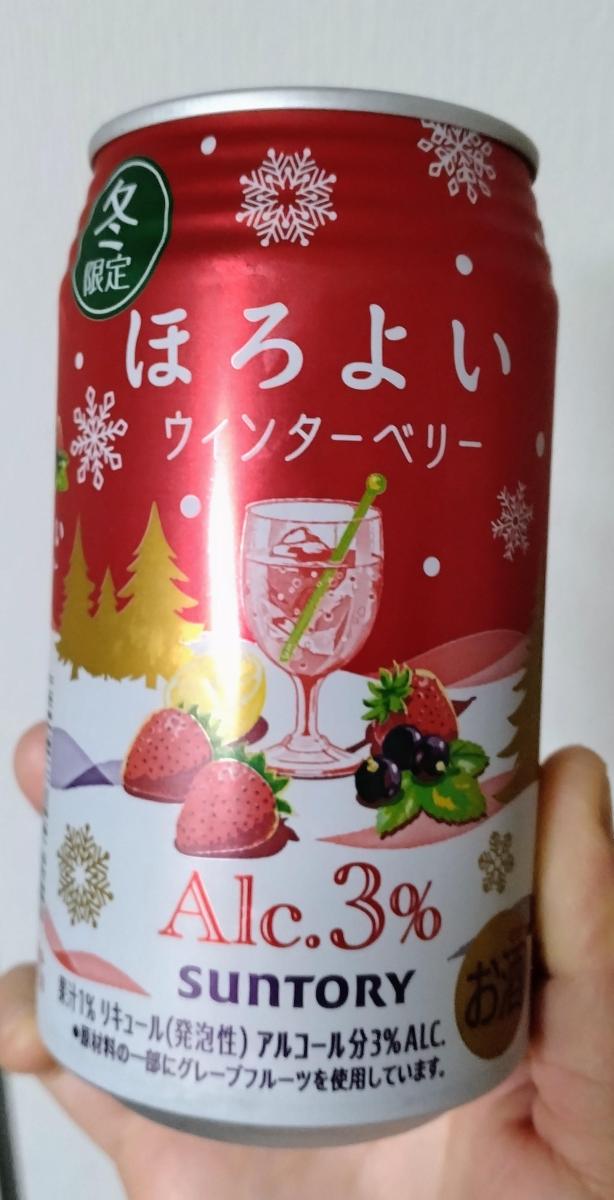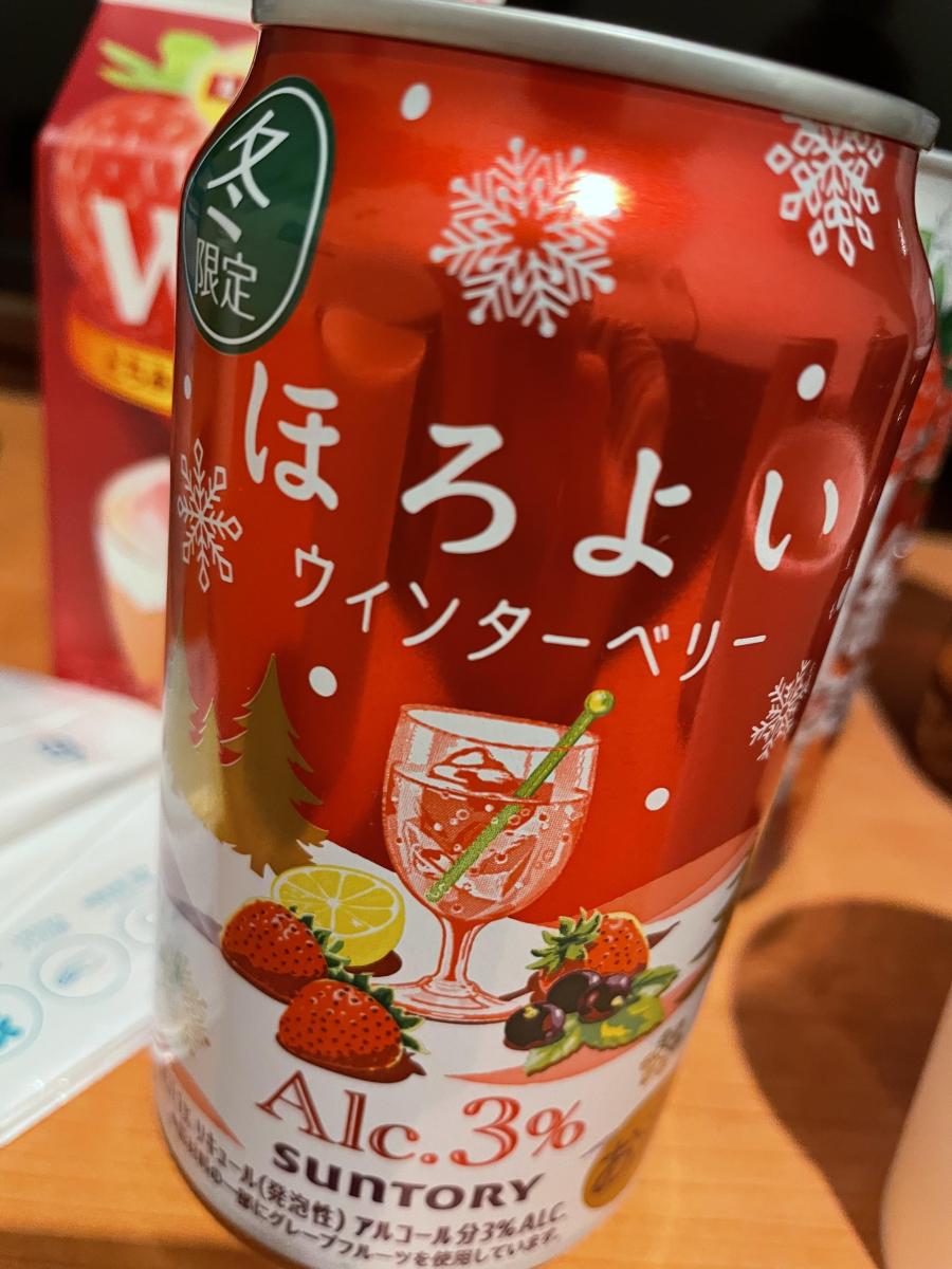 ほろよいの新商品、ウィンターベリーです。色は赤く味はベリー感が少しありましたが、シャンメリーみたいな味もして甘さは割とありました。甘すぎるのが得意ではないので、無糖の炭酸で、更に割ってのんでみました。クリスマスの食卓に合っていたように思います。