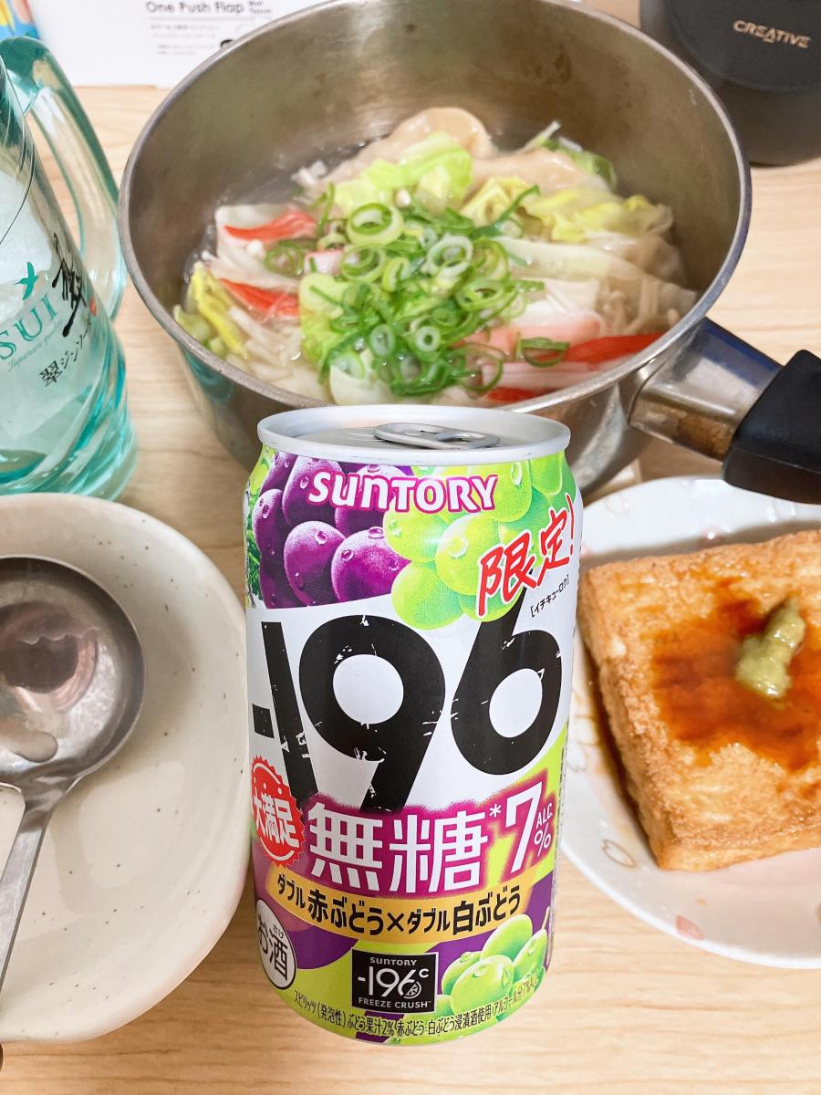 -196シリーズはもっと味が濃く甘味が強いイメージがありましたが無糖ということもあってかあっさりとしたぶどうのテイストでした。アルコール度数は7%あるので500ml缶だと気持ち良く酔えました。