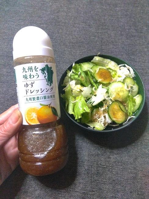 ゆず味ドレッシングは珍しくはないのかもしれませんが、九州醤油使用とのこだわりありの品。ノンオイルでないので適度なオイリーさもありながらのたまねぎ風味のある醤油ベースドレッシング。酸っぱさが目立つのかと思いきや甘さがあるので酸い刺激なしにゆず風味を味わえます。オイルっけはありますが柑橘の爽やか効果で中和。酸味が苦手な家人も気にせず食べてくれるので、遠慮なくかけて野菜サラダの味付けにしています。