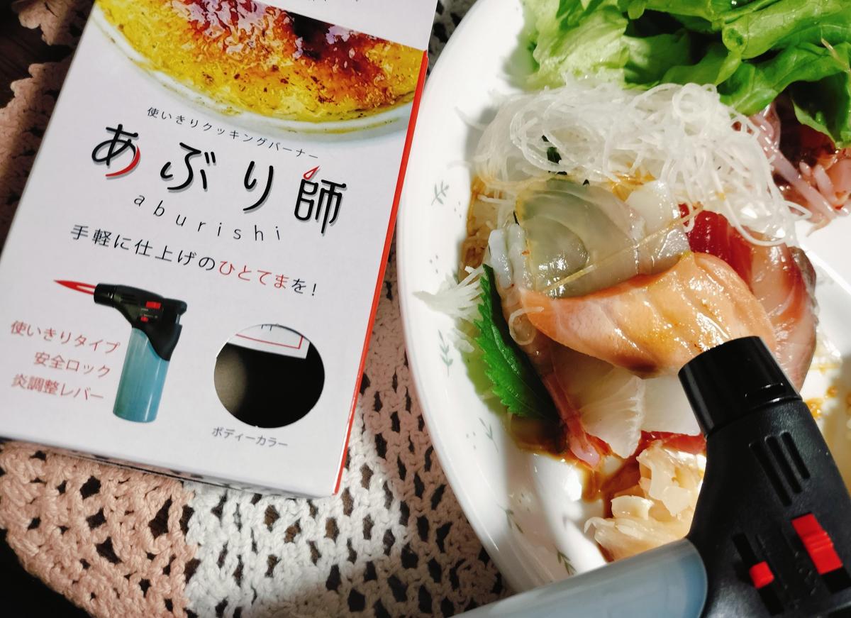 炙りサーモンや炙りえびチーズといったお寿司のネタが好きで、家でも出来たらいいのにな~と長らく思っていました。YOUTUBERさんたちが使用しているのは何だか本格的な大きなバーナーで使いこなせなさそうと思っていたところ、生協のカタログに気になる商品が掲載されているではありませんか!