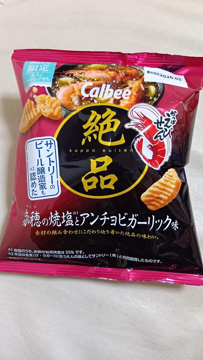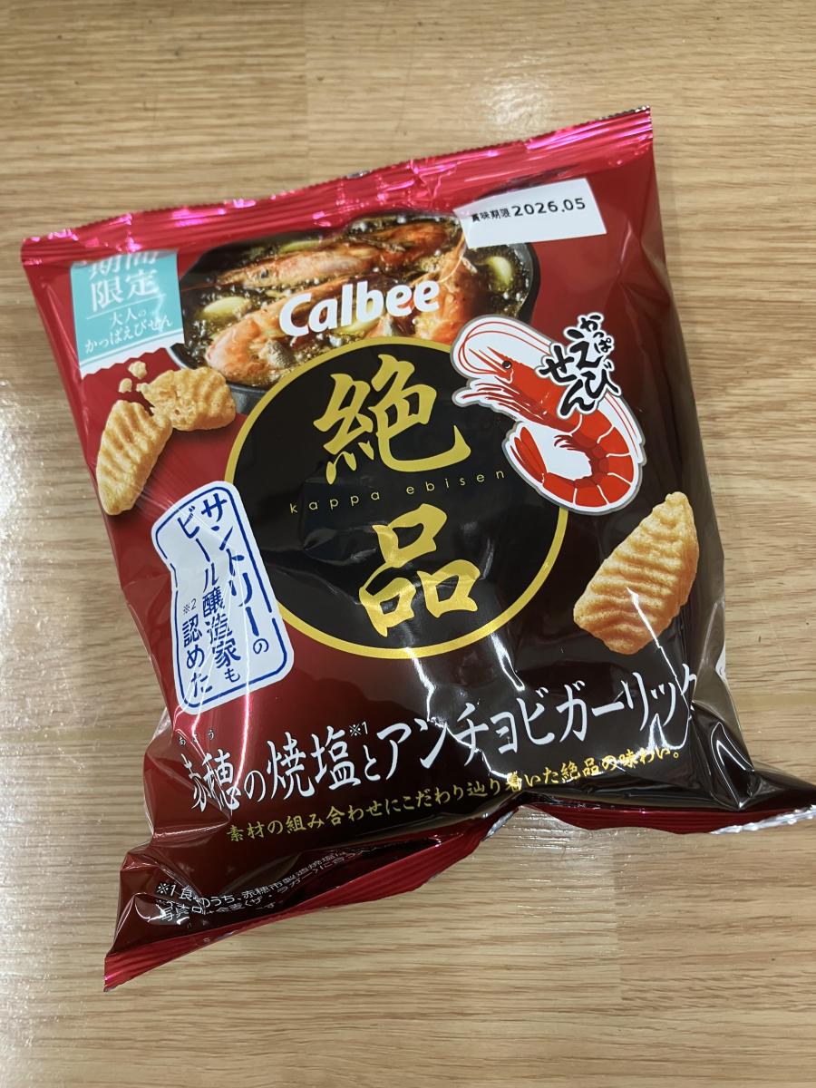 ネーミングがとても長いのだけど、まず言えるのは十分以上においしくて、サントリーの太鼓判もあるのがわかる、おつまみには抜群のかっぱえびせんだということ。絶品というのもわかるくらいの特別感はキチンとあるなと思える。味の点で一番印象的なのは塩で、これが焼塩と言われるとなるほどとわかる独特の香ばしさがおいしさのポイント。その上でのアンチョビガーリックはどう?となると、こちらは微妙で、その言葉の響きからくるほどのクセとか特徴は伝わってこない。そこの主張がもっとあってもいいとは思うけど、おいしさでの不満は全くないかっぱえびせんなのは間違いないと思った。