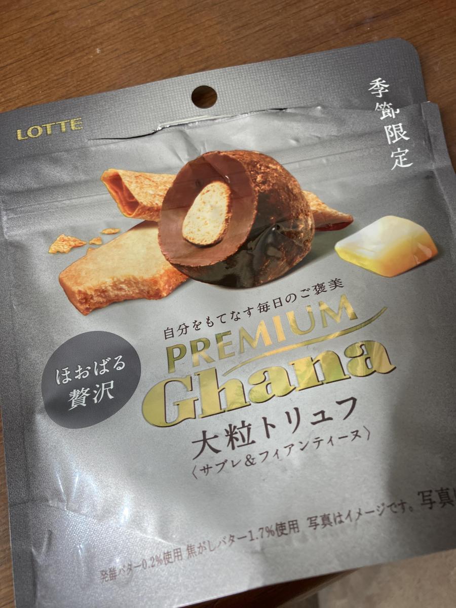 メタリック調のパウチパックに入ったプレミアムガーナの大粒トリュフがありました。