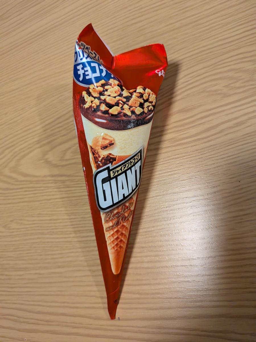 昔からあるグリコのジャイアントコーン! テレビでコーンアイスのランキングをやってて2位になってるのを観てすぐ買いに走りました。大きさやフォルムが昔と変わらず嬉しい!ひとくち食べてやっぱり美味い!!チョコとナッツのバランスが最高だし、コーンの部分が劇的に美味しい!!先の先までぎっしりとアイスが詰まってるのも最高です。しばらくはこのアイスがマイブームになりそうです。