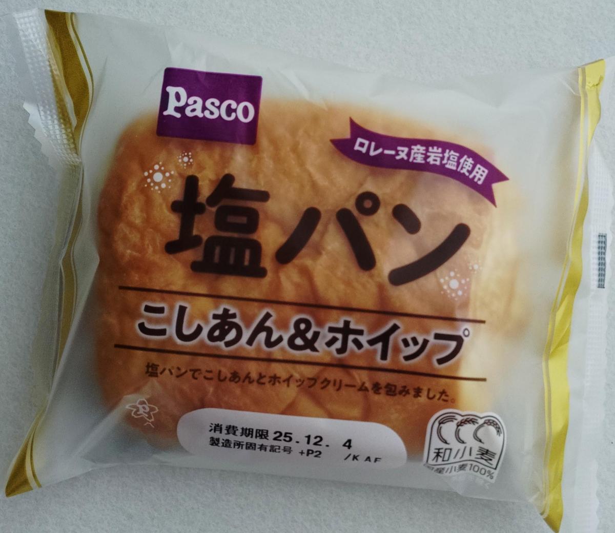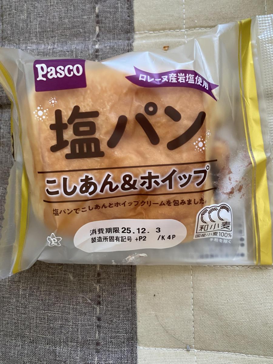 塩パンの中に、甘いこしあんとホイップクリームが入っています。塩パンのしょっぱさと、こしあんとホイップクリームの甘さのバランスが良くて、美味しかったです。パン生地も、ふんわりと柔らかいですね。欲を言うならば、あんとホイップクリーム、もっとたっぷり入っていたら、嬉しかったです。