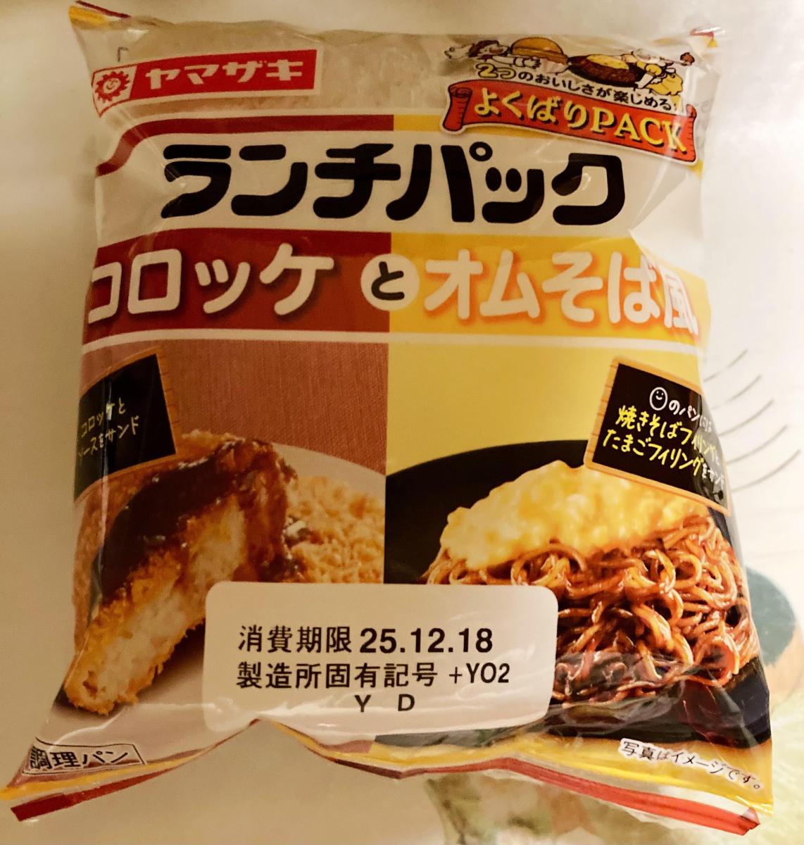 ランチパック コロッケとオムそば風のネーミングに惹かれてどんな味か試したく購入してみました。パンはしっとりふんわり柔らかくパサつきもなく食べやすい食感です。たまごマークのパンには焼きそばフィリングとたまごフィリングが入っており、結構味が濃いめでした。一方のパンにはコロッケとソースをサンドされており、こちらも味が濃いめで、じゃがいもの甘みと相性が抜群でした。