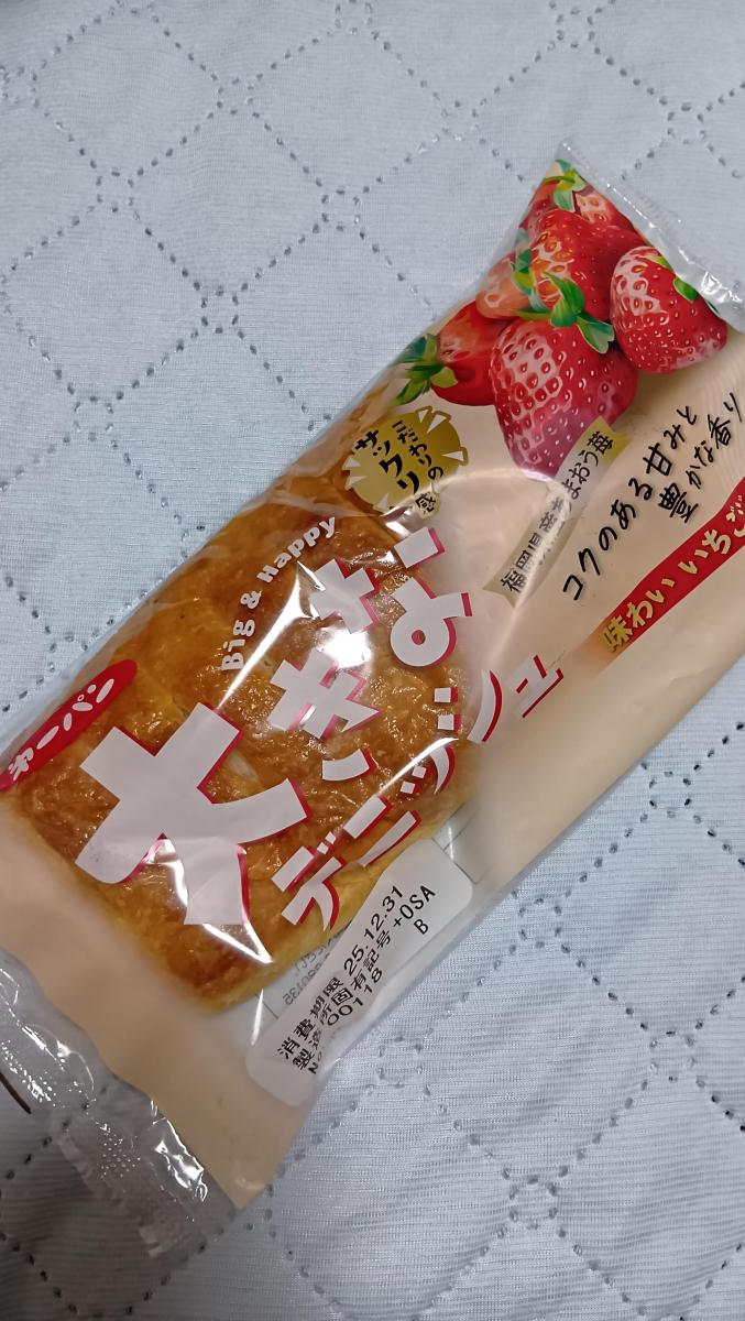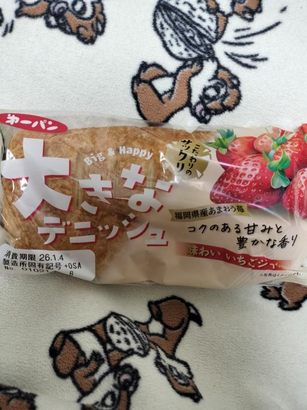 大きなデニッシュとあるように大きくて満足感がありました。中のいちごジャムは甘さが控えめでイチゴの甘酸っぱさが感じられておいしかったです。ただデニッシュのサイズに対してジャムの量がやや少ないので残念でした。