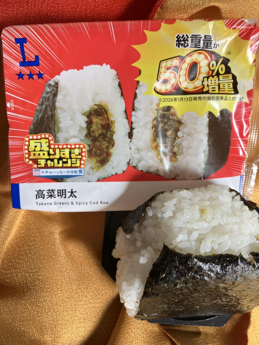 前回も高菜明太おにぎりが増量されていておいしくいただいたが今回もこのおにぎりが増量で買わずにはいられませんでした。