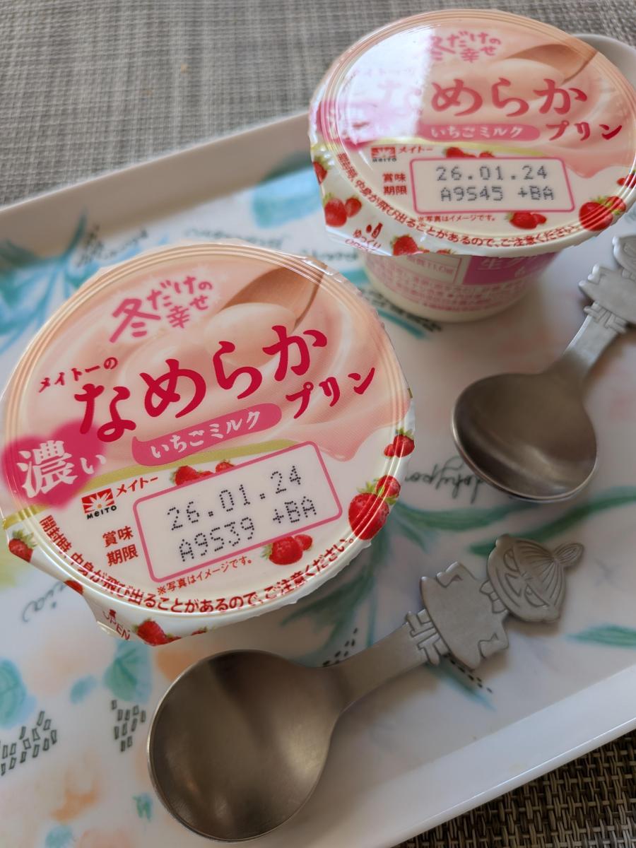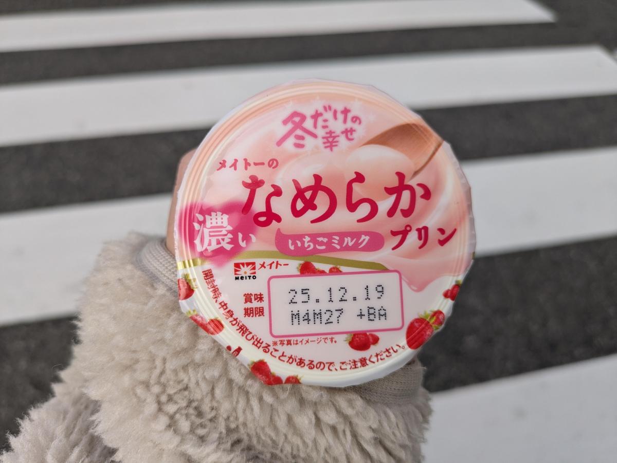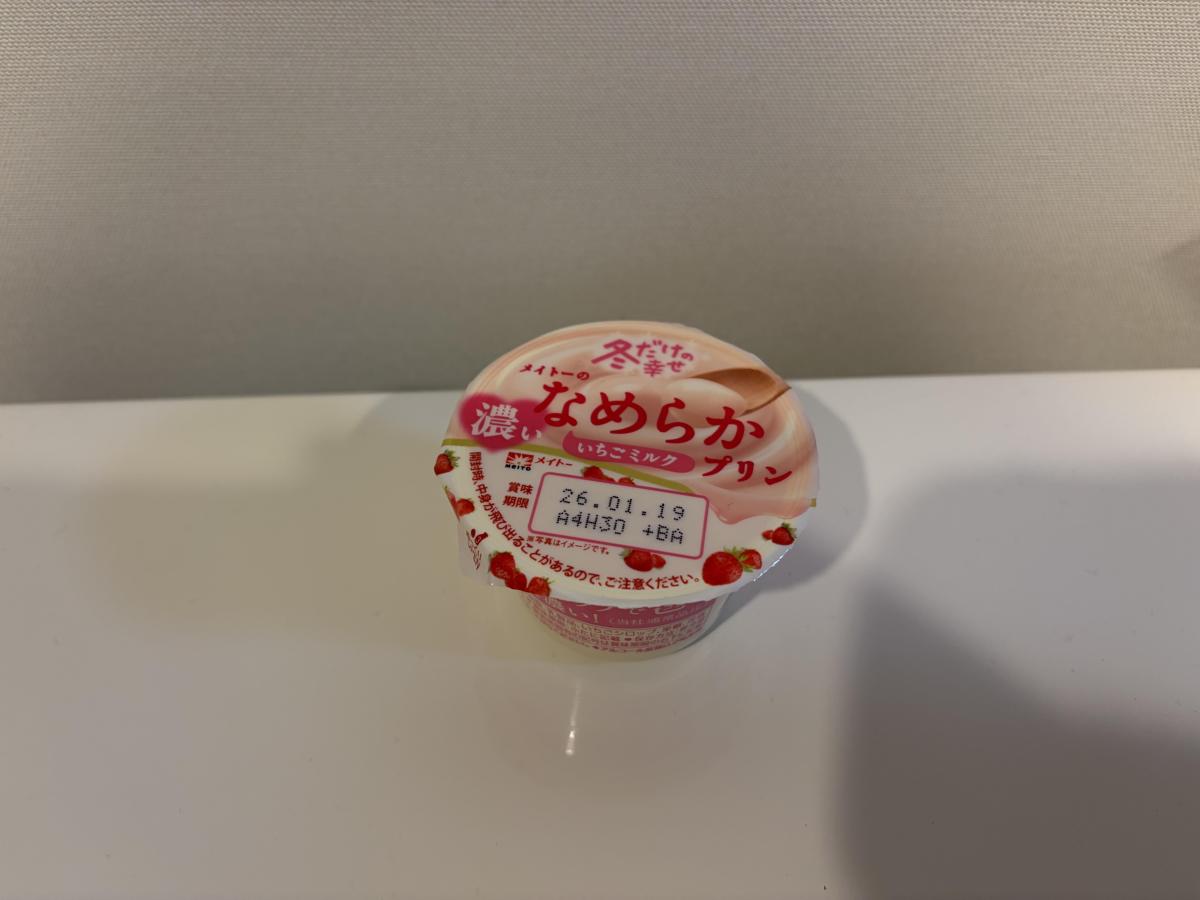 メイトーのなめらかプリンが看板商品ですが、冬だけ楽しめる限定のいちごプリンということもあって購入。