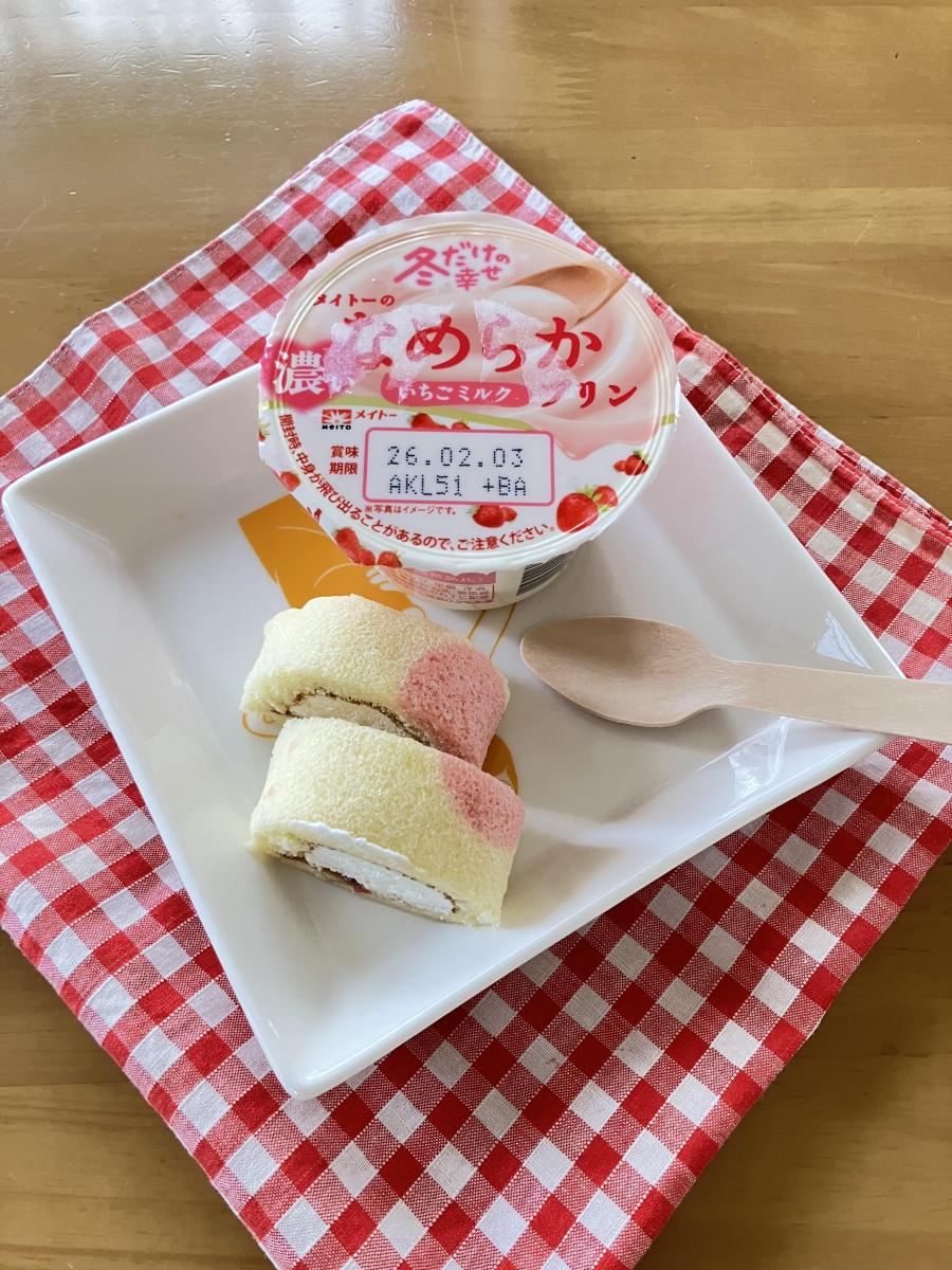 ぷるぷるとして濃厚なミルクといちごの甘酸っぱさが心地よい美味しさでロールケーキと一緒に食べていて幸せ気分になりました。