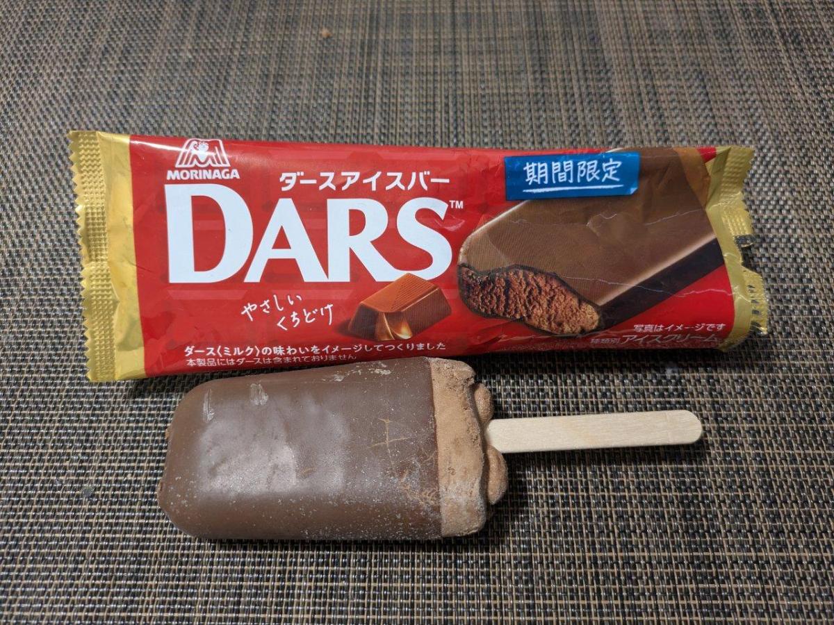 ダースアイスバーのネーミングに惹かれてどんな味か試したく購入してみました。チョココーティングは程よい厚みでパキパキといい食感が楽しめます。口溶けよくスイートチョコのような味わいでしっかりとチョコレートの風味が感じられます。チョコレートアイスはなめらかで、ほんのりほろ苦さもあるような