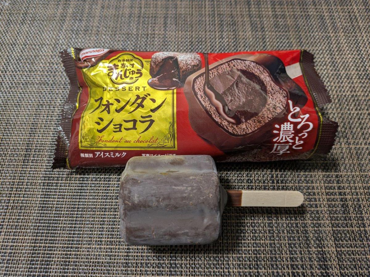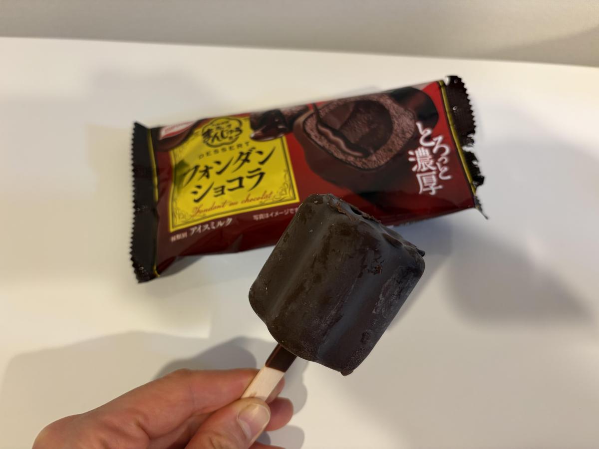アイスまんじゅうフォンダンショコラは、外側のチョコアイスの中から濃厚なチョコソースがとろり食感です。和風まんじゅうの食感と本格フォンダンショコラのコクが合わさった、満足感の高い大人向けアイスです。