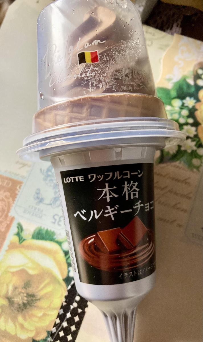 ロッテ ワッフルコーン本格ベルギーチョコ味が大変気になり購入してみました。なめらかで、軽すぎず、コクもしっかりでした。ミルキーなチョコ風味ですがフルーティなカカオ感が感じ美味しい味わいです。シュガーコーンは全粒粉入りでサクサクで甘香ばしくて大変いい食感です。ややビターなチョコだったので大変食べやすく美味しかったです。