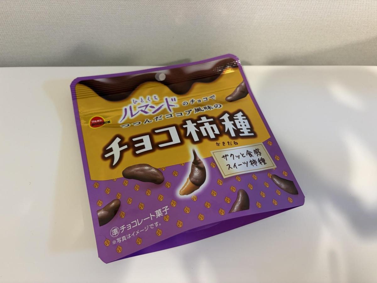 なんとルマンド風のチョコで包んだ柿の種とのこと。これは見るからに甘辛で期待で心が躍ります。柿ピーのピリッとした味と軽めのまろやかチョコでパクパク食べられてしまいます。一人のサイズ感もよいです。