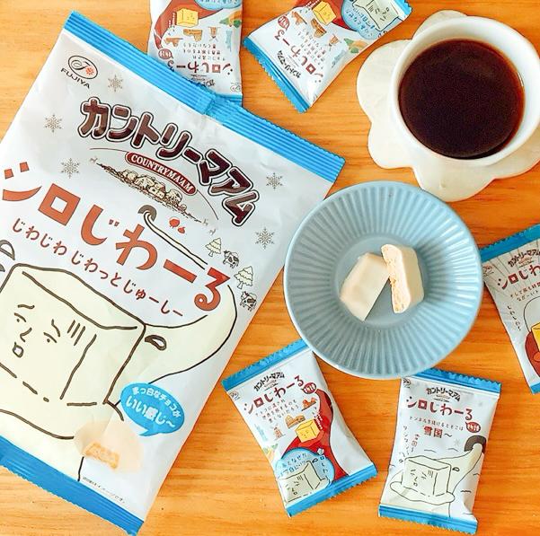 バターがじわーるから、ミルク感が強めのシロじわーるが登場しました。角ばったカントリーマアムで、ホワイトカラーなのが、少し上品な見た目です。