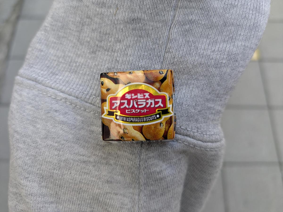 ビスケットが混ぜ込まれたチョコかと思いきや、焼き菓子風味生地の中にミニアスパラガスを入れたWビスケットだそう。