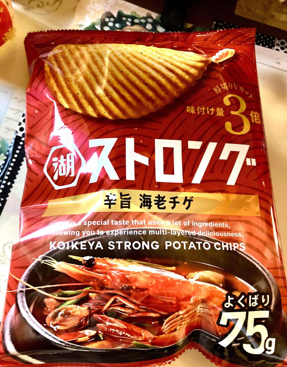 海老の風味がとても強く感じられ、旨みもあり、美味しかったです。チゲ風味なので、他の海鮮の味わいも感じられます。辛口ではありますが、海老をはじめとする海鮮の旨みが強いので、とても食べやすく、クセになるお味でした。厚みのあるギザギザカットのポテトチップスで、食べ応えがありました。