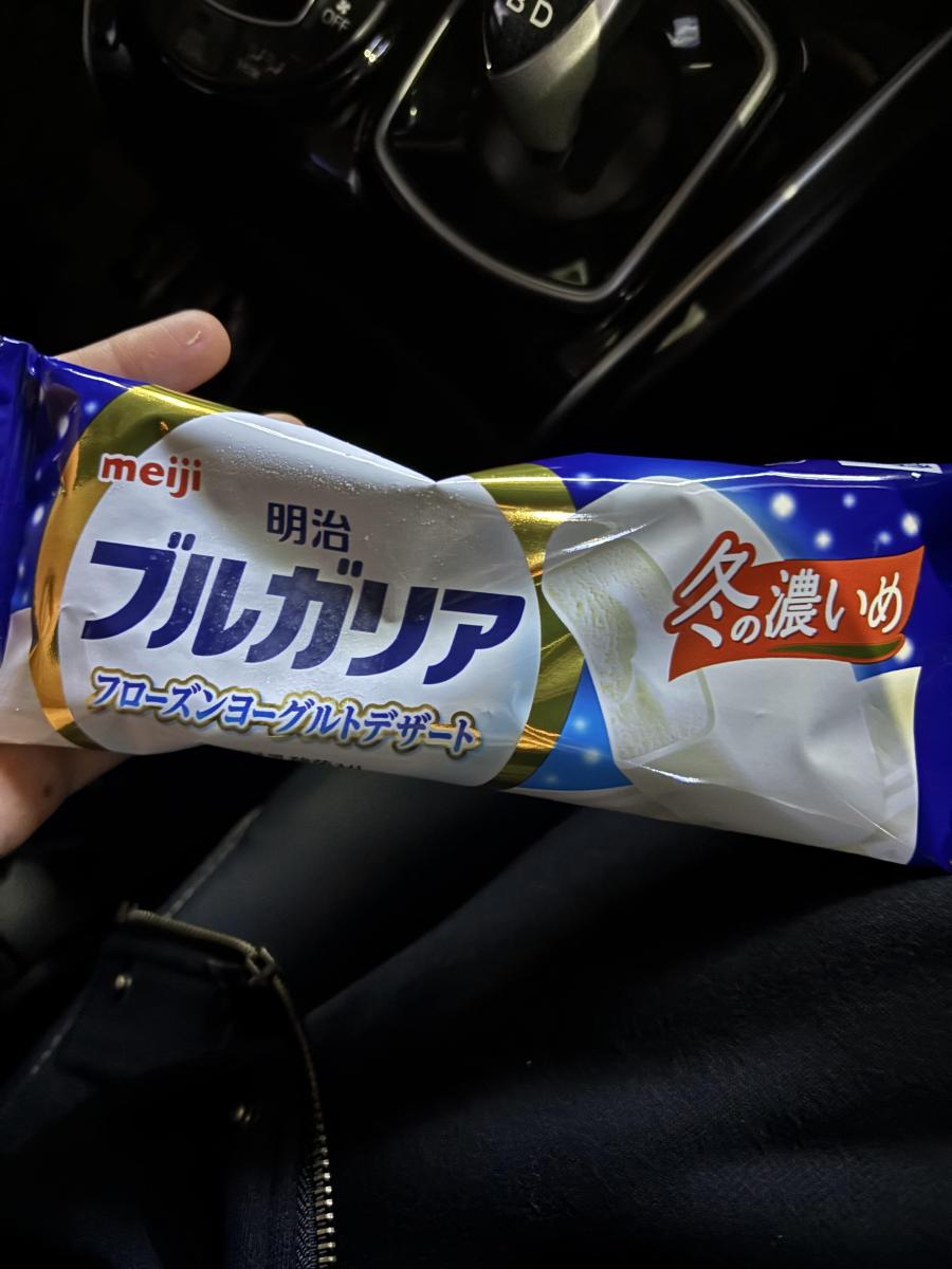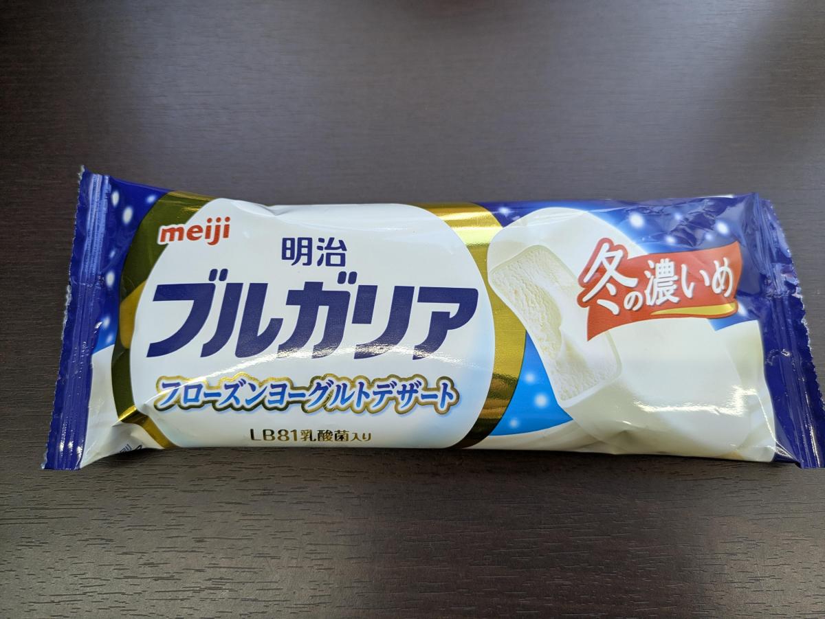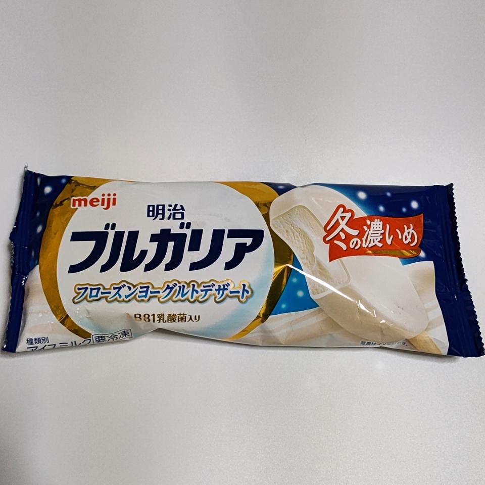 「明治ブルガリア フローズンヨーグルトデザート」は何回リピートしたか分からないほど大好きなアイス。冬限定の「濃いめ」は、乳脂肪分と無脂肪固形分が高くなっていて乳製品のまったり濃厚なコクを楽しめる。ヨーグルトの酸味も程よくあり、 酸味と濃厚さのバランスが良くて後味はクリーミー。