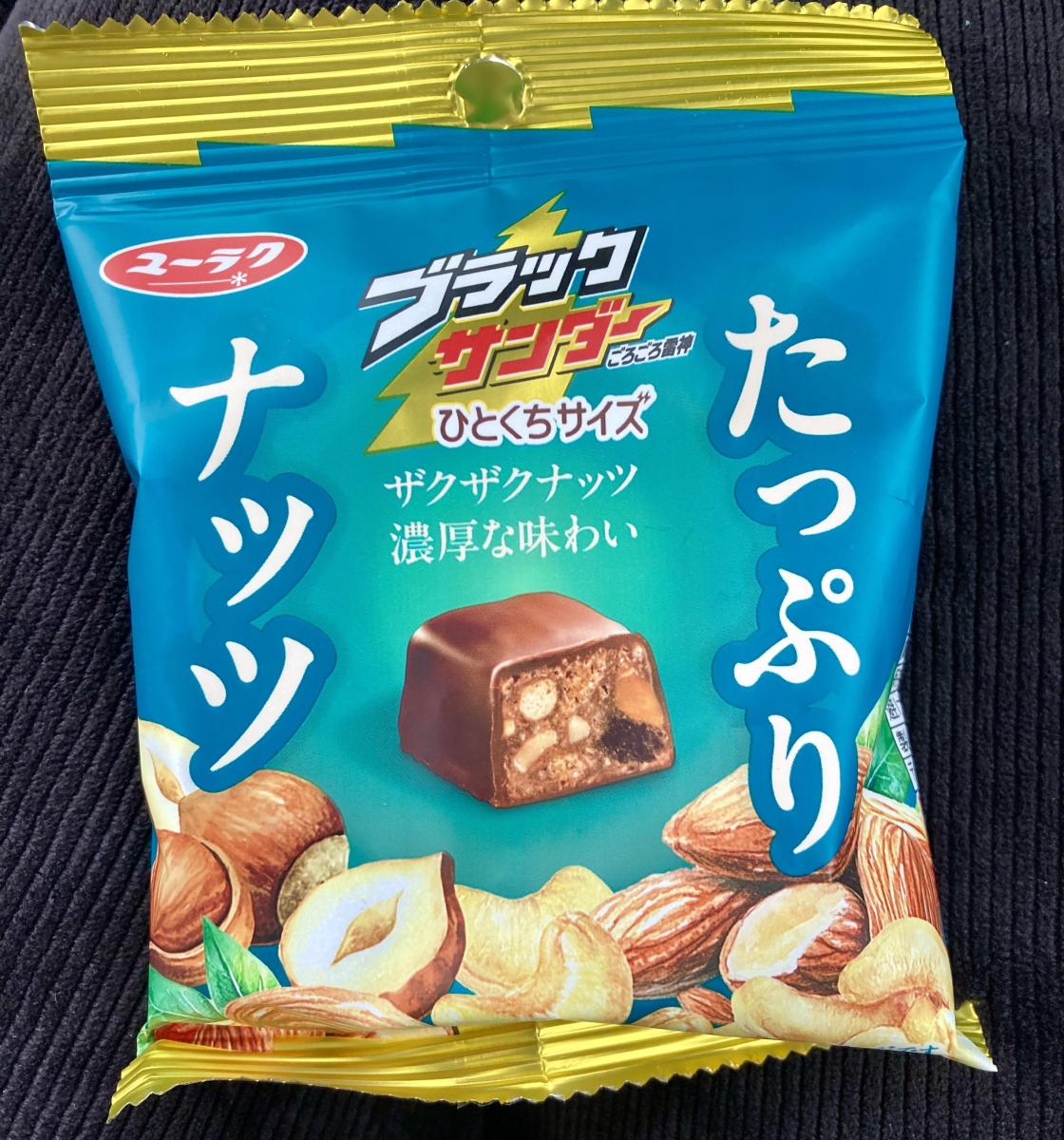 ざっくり感がおいしいブラックサンダーが、一口サイズなのも食べやすくてよいし、さらにたくさんのナッツが入って特徴を生かせてる気がします。おいしい!食べすぎ注意。