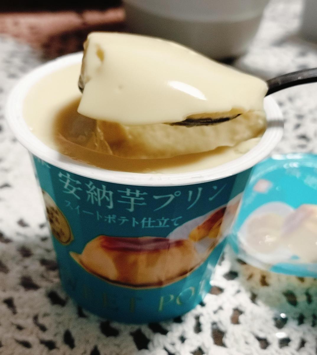 安納芋の甘みがしっかり感じられる、スイートポテト風味の濃厚プリンです。なめらかな口当たりで、芋のコクとやさしい甘さのバランスが良く、デザート感も満足です。芋好きにおすすめです。