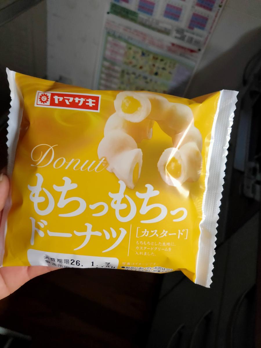もちっもちっドーナツ、カスタード味のネーミングとパッケージに目が惹きどんな味か試したく購入してみました。ドーナツは、しっとり、もちもち、むっちり、柔らかめで歯切れ良くポンデリングのような食感です。カスタードクリームはしっかりとたまご風味がありねっとりとろりと、しっかり甘めな味わいでしたがカスタード好きにはぴったりでした。甘いのでシュガーコーティングはなくてもいいかも。