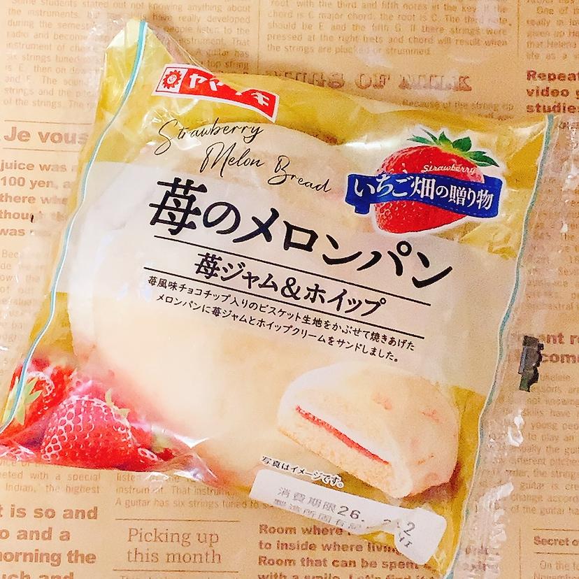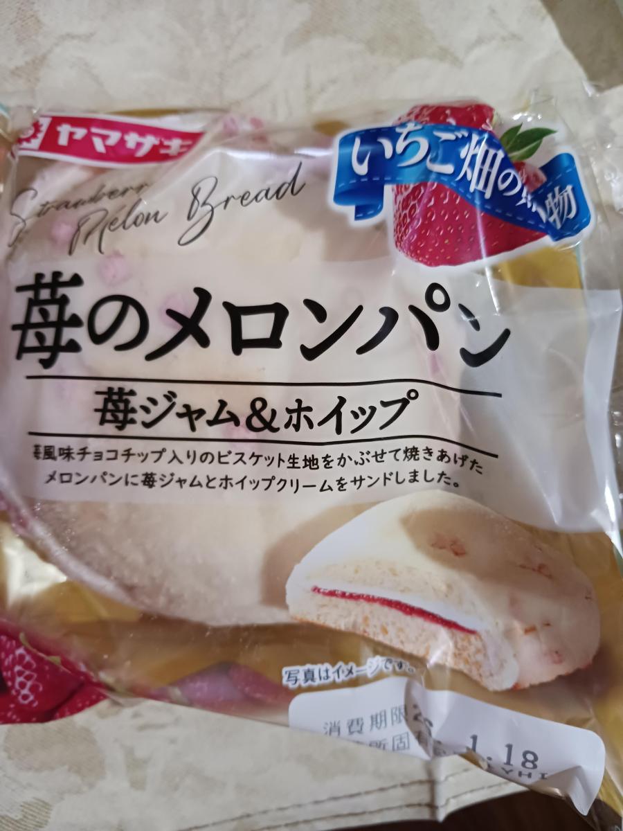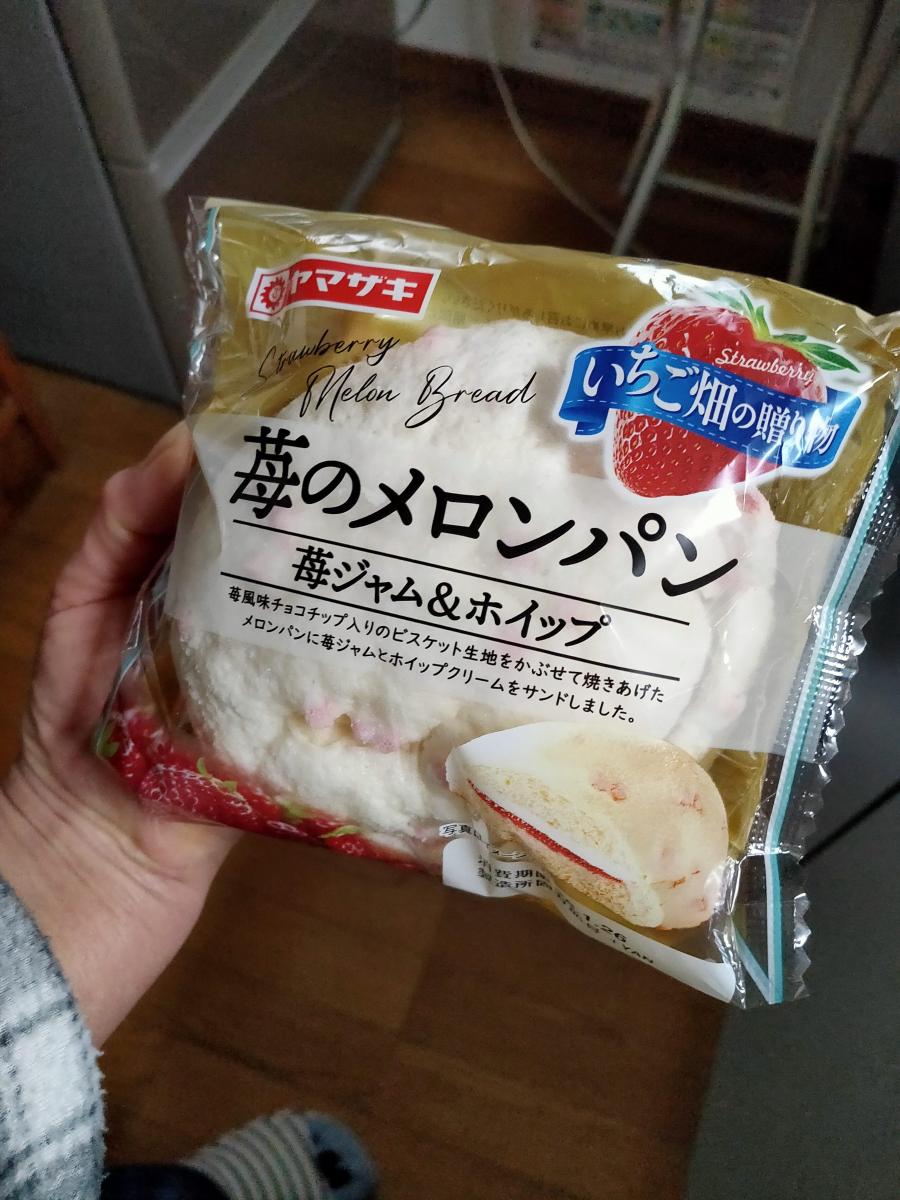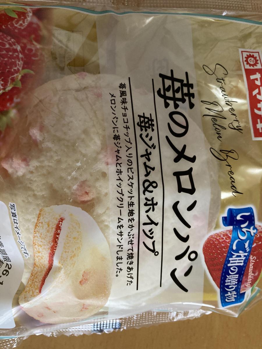 スーパーで見つけて購入しました。苺ジャムとホイップクリームがサンドされたメロンパンで、クリームがよいアクセントになっていておいしいです。