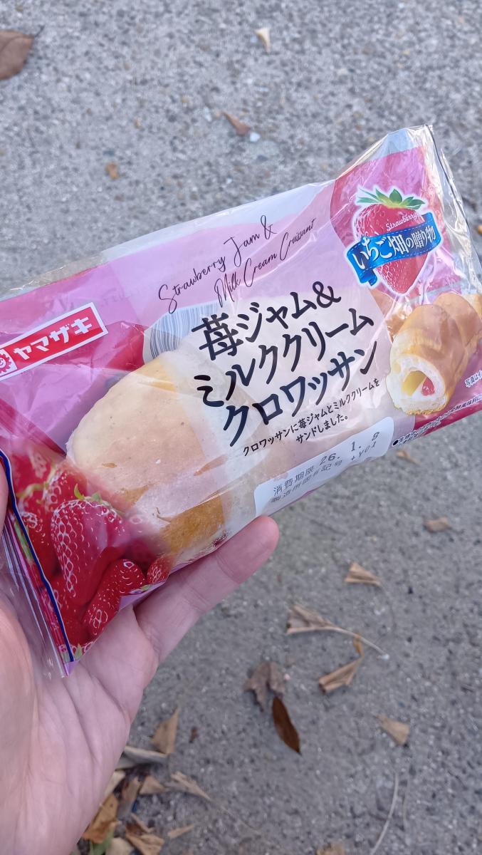 いちごの味に期待して食べてみたけれど、圧倒的なミルク感の方が印象的だなと思った。そのミルク感はもちろんミルククリームのコクもあるのだけど、クロワッサンそのもののミルク感の強さの方がより際立っている感じで、ひとくち食べてクリームにたどり着く前からミルキーな味わいがしっかりとある。そこにいちごジャムの甘酸っぱさが加わって、爽やかさをうまくブラスしてくれている。パンの方もクロワッサンとは言いつつもサクサクというよりはもう少し重たい生地で、実はクロワッサンらしくないのだけど、この商品にはマッチしていて、その点もおいしさのポイントになっていると思った。
