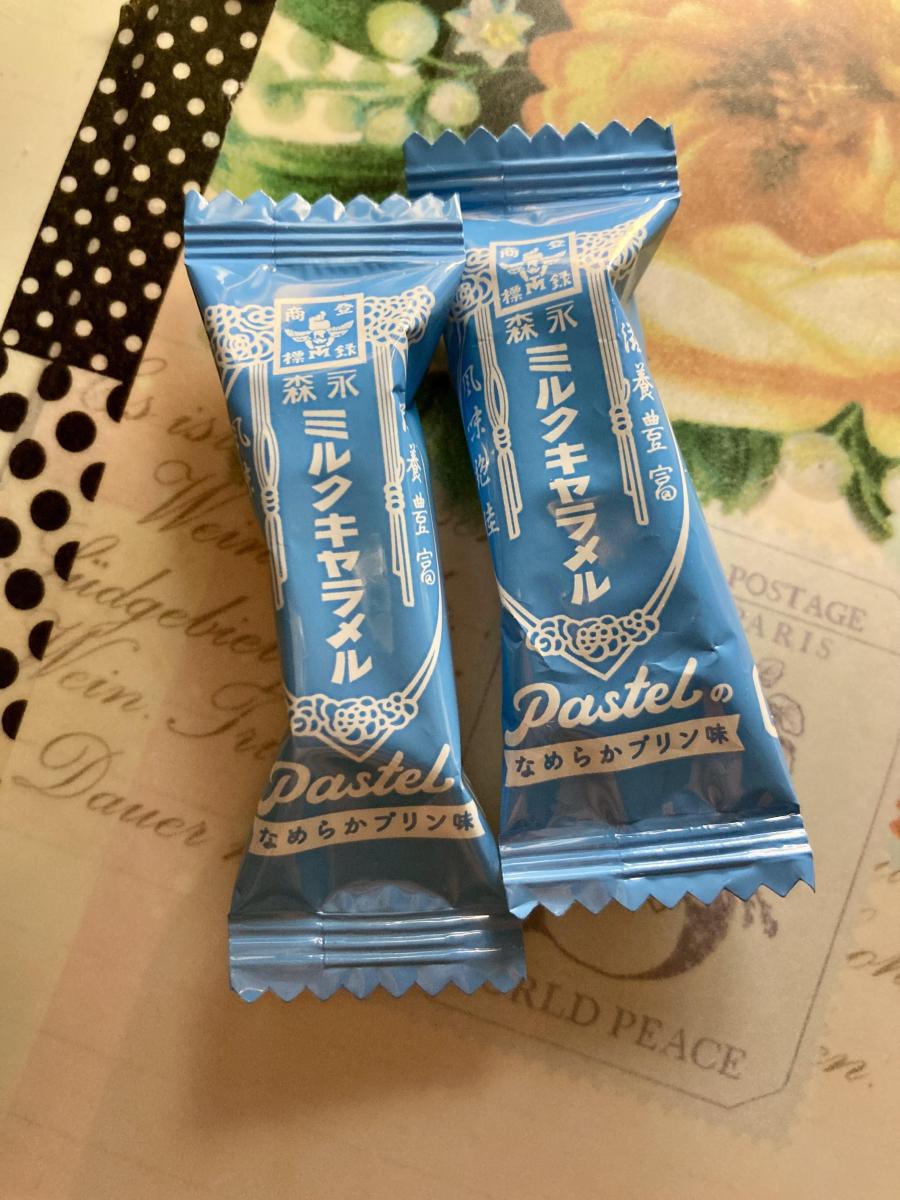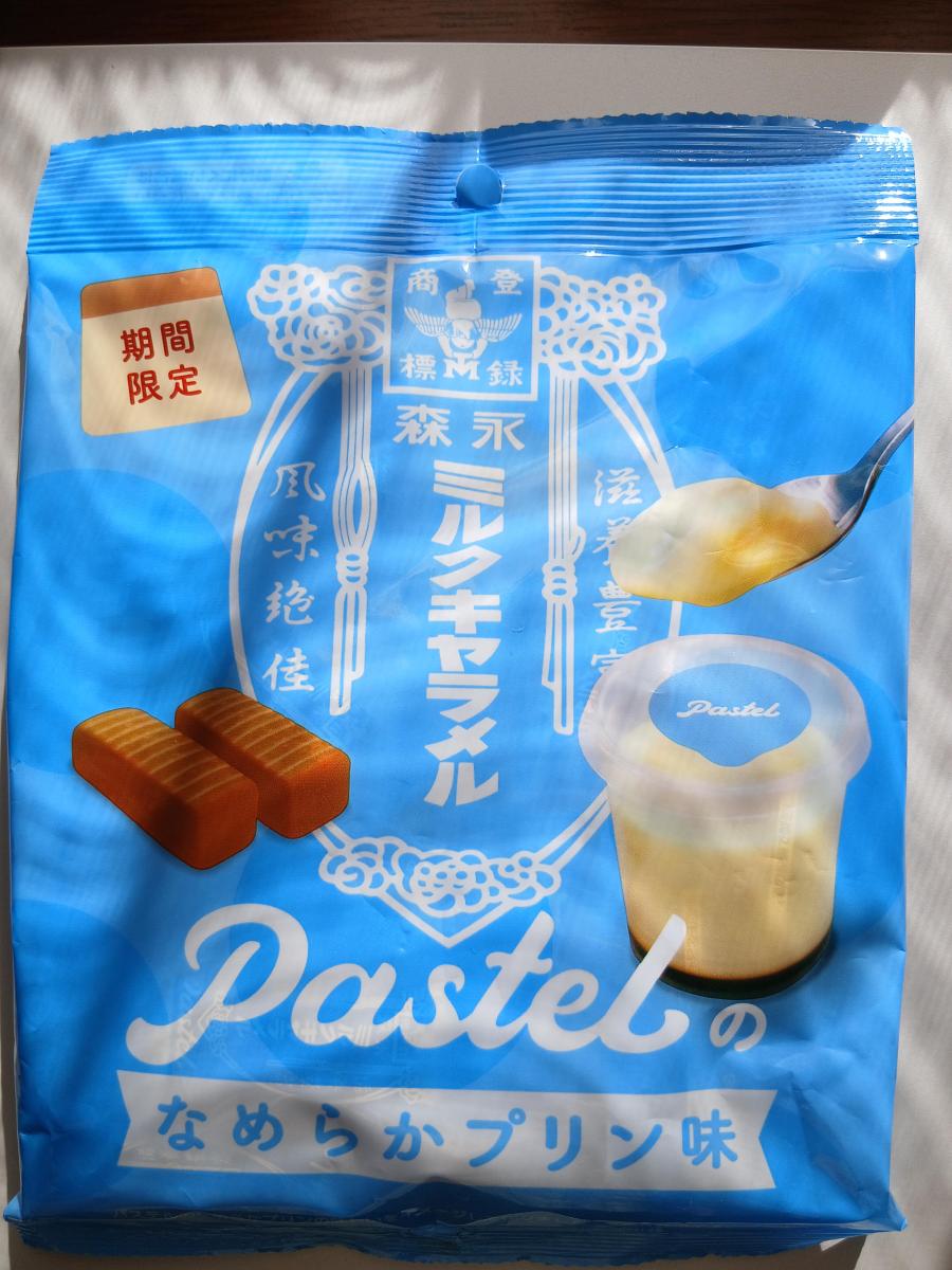 水色のパッケージのシリーズです。森永ミルクキャラメルをパステルさんのプリン味にしたタイプです。