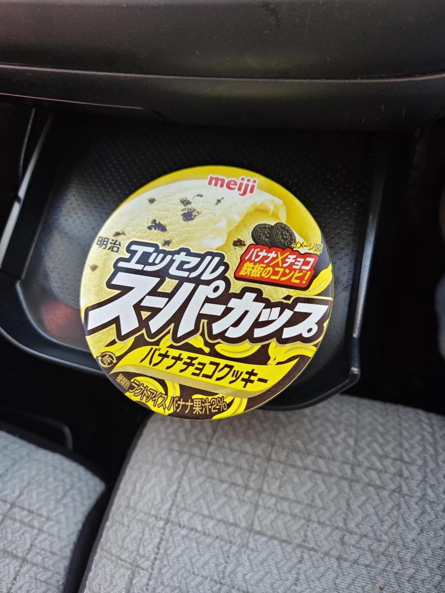 いつものようにスーパーに行きました。アイス売り場をチェックしていると、スーパーカッブの新製品が出ていたので試しに買って見ました。フタを開けた瞬間にバナナのいい香りがしてきました。一口食べて見るとバナナの味が濃厚ですが、チョコの存在感が希薄なのが残念でした。