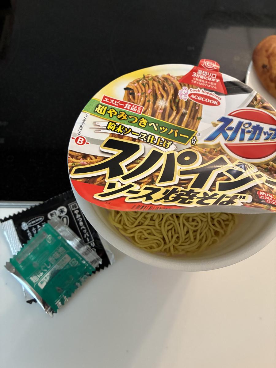 麺はもちっとしていて、胡椒のスパイシーな辛さが強めのカップ焼きそばでした。具は入ってなく、ほぼ麺だけです。食べ進めると最後の方は舌が辛くなるので、スープなどと一緒に食べるのが良いと思います。