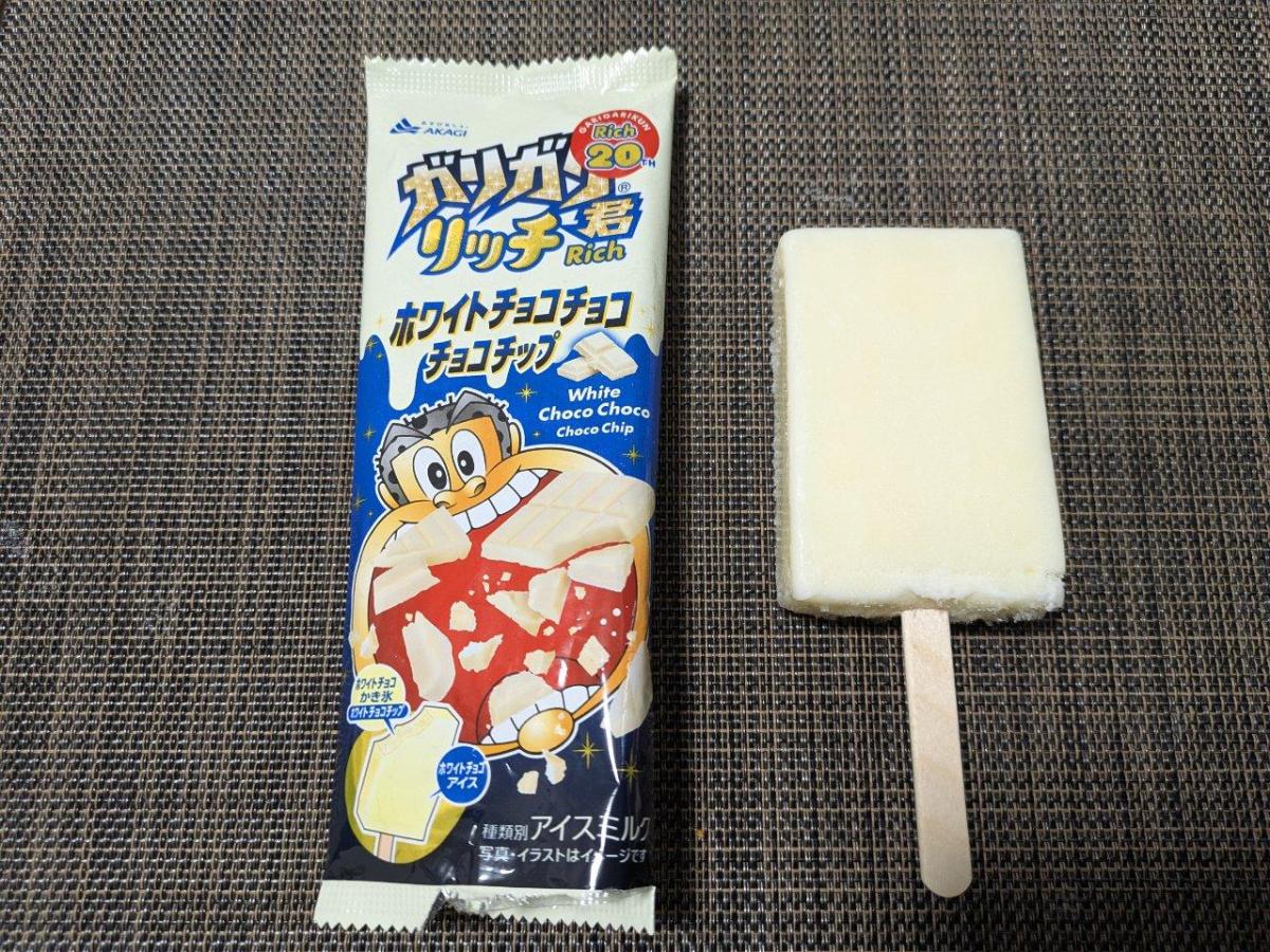 ガリガリ君リッチシリーズ20年目第1弾商品で、シリーズ初フレーバーのホワイトチョコとのこと。