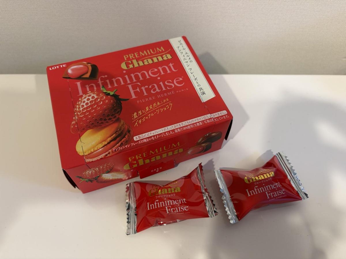 ロッテのプレミアムガーナインフィニメントフレイズいちごのフルーツショコラ味は、華やかないちごの酸味と濃厚なチョコの甘みが絶妙に調和しています。口どけがなめらかで上品な味わいが広がり、ちょっと贅沢な気分を楽しめます
