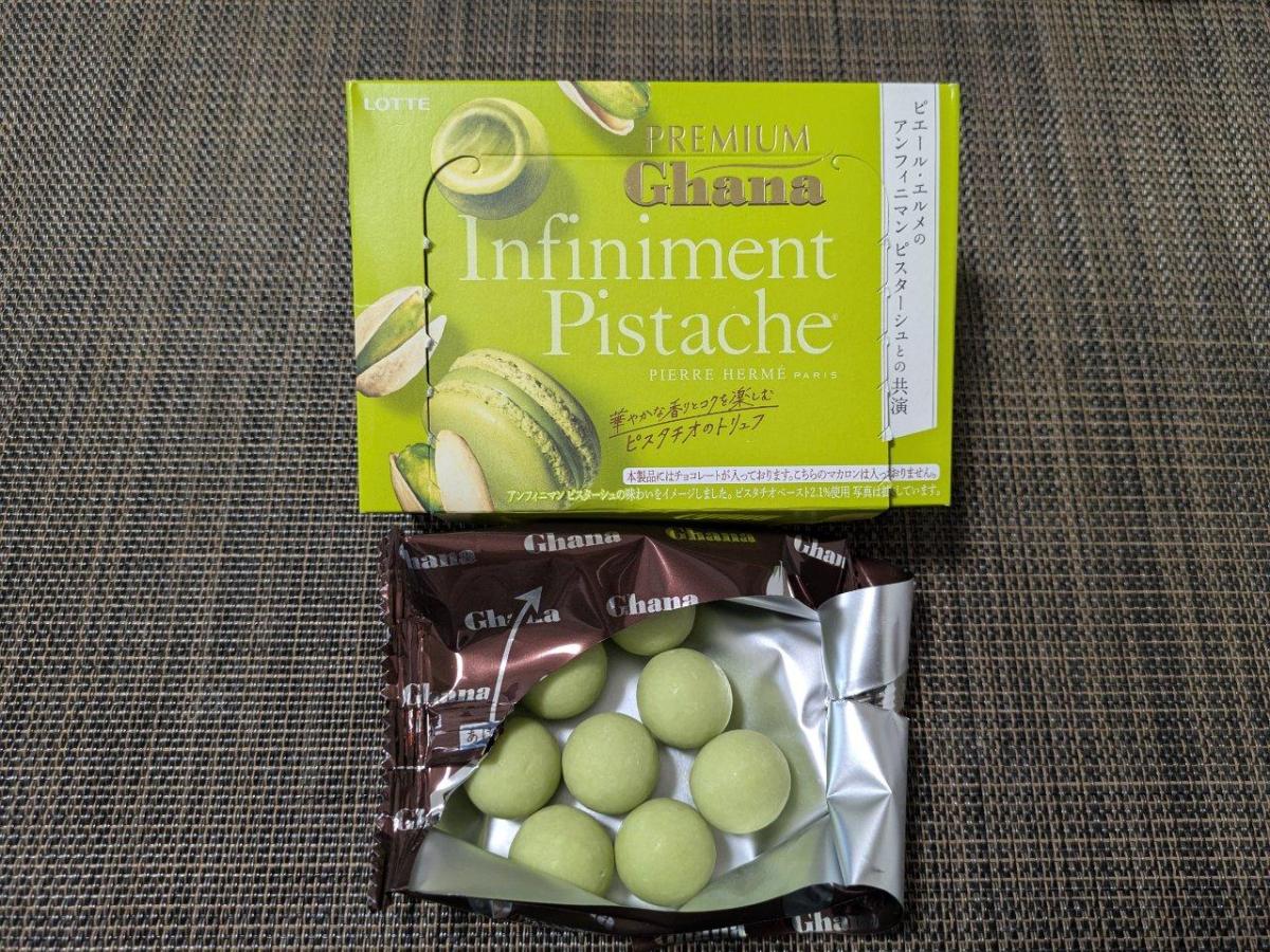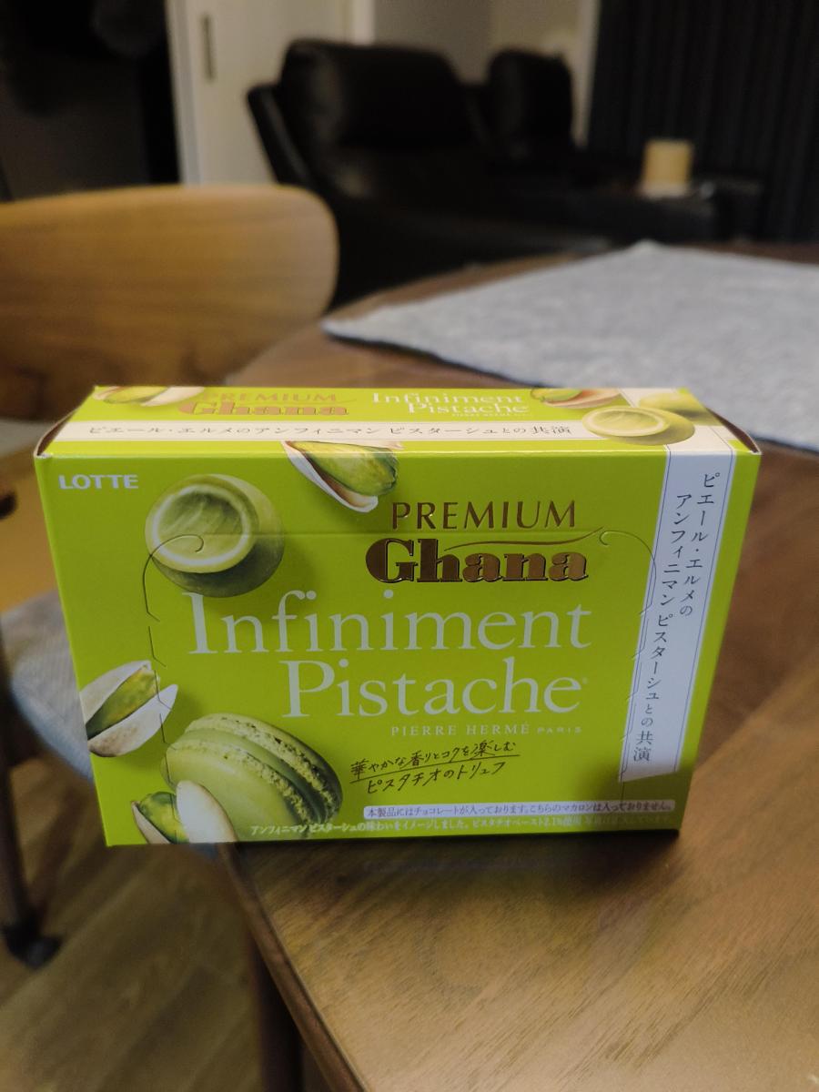 濃厚なガーナチョコのコクに、ピスタチオの香ばしさが上品に重なります。なめらかな口どけとトリュフの贅沢感があり、甘さはほどよく後味も軽やかです。高級感のあるパッケージデザインが目につき、手に取ってしまいました。