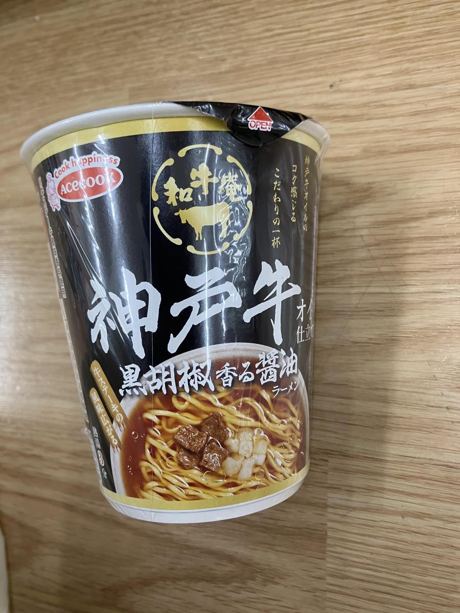 エースコック和牛庵 神戸牛黒胡椒香る醤油ラーメンは、神戸牛の旨みが溶け込んだコク深い醤油スープが印象的です。黒胡椒の香りがふわっと広がり、後味を引き締めます。麺はなめらかでスープとの相性も良く、贅沢感を手軽に楽しめる一杯です。