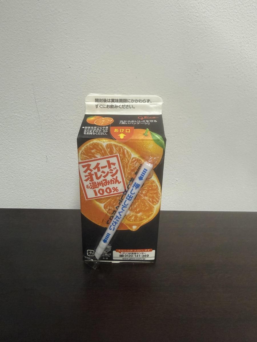 オレンジと温州みかんの果汁がミックスされています。果汁100%なのが嬉しいですよね。2つの果実がミックスされているので、酸っぱすぎることなく、程よい甘酸っぱさでとても飲みやすかったです。ストローがついているのでとても飲みやすく、外出先で飲むのにも便利です。