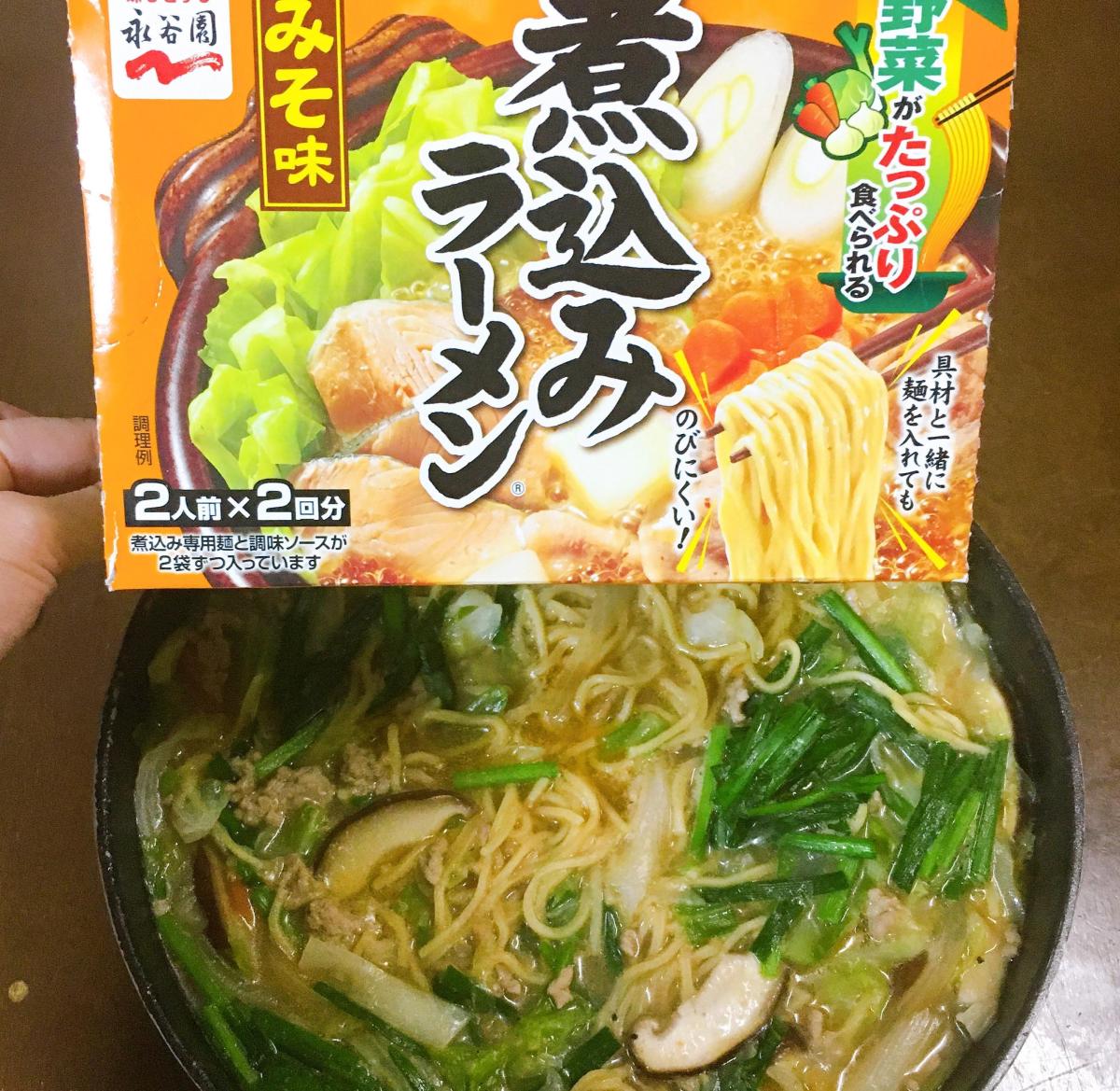 寒い日の夜に鍋をすることが多いので、煮込みラーメンを食べました。煮込んでも麺が伸びにくく、いろんな野菜を入れても合いました。簡単に味噌ラーメンが作れ、美味しかったです。