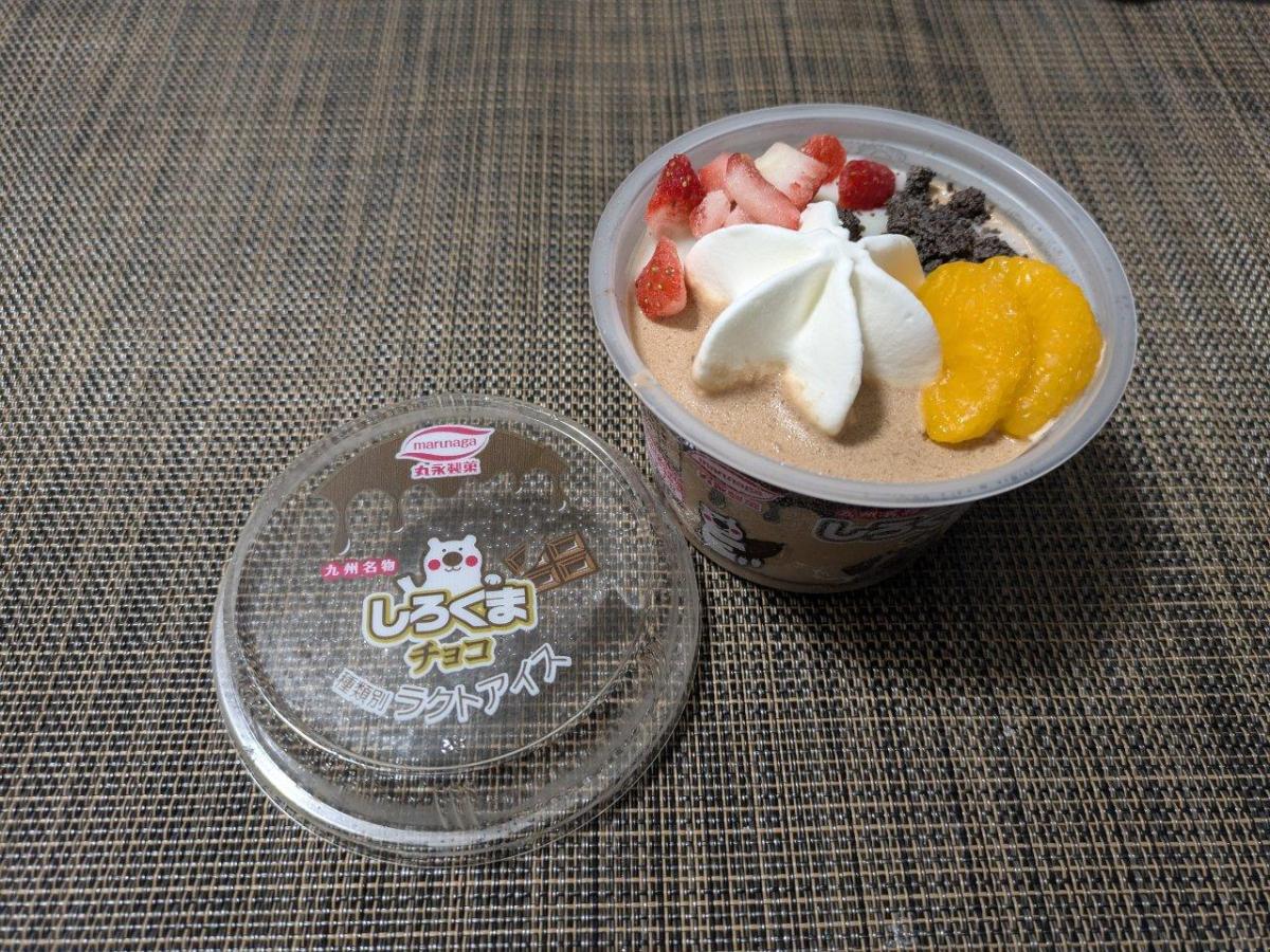しろくまシリーズが大好きで今回チョコ味が気になり購入してみました。バニラフロートはなめらか、しっかりミルキーで、甘さも程良くあり美味しいです。チョコ氷は甘いミルクチョコの味わいです。爽やかな食べ心地です。チョコソースも入っておりしっかり甘めな味わいです。フルーツの甘酸っぱい味とチョコレートの甘さとのバランスがよくて美味しい味わいです。
