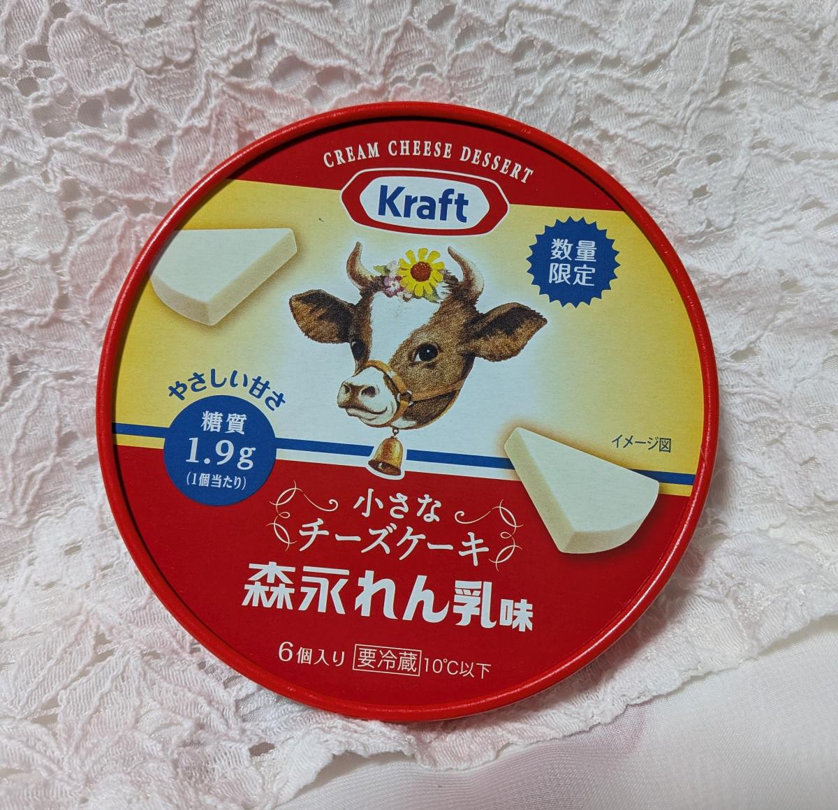 可愛らしい牛さんのイラストがついたクラフトのチーズがありました。小さなチーズケーキ森永れん乳味です。