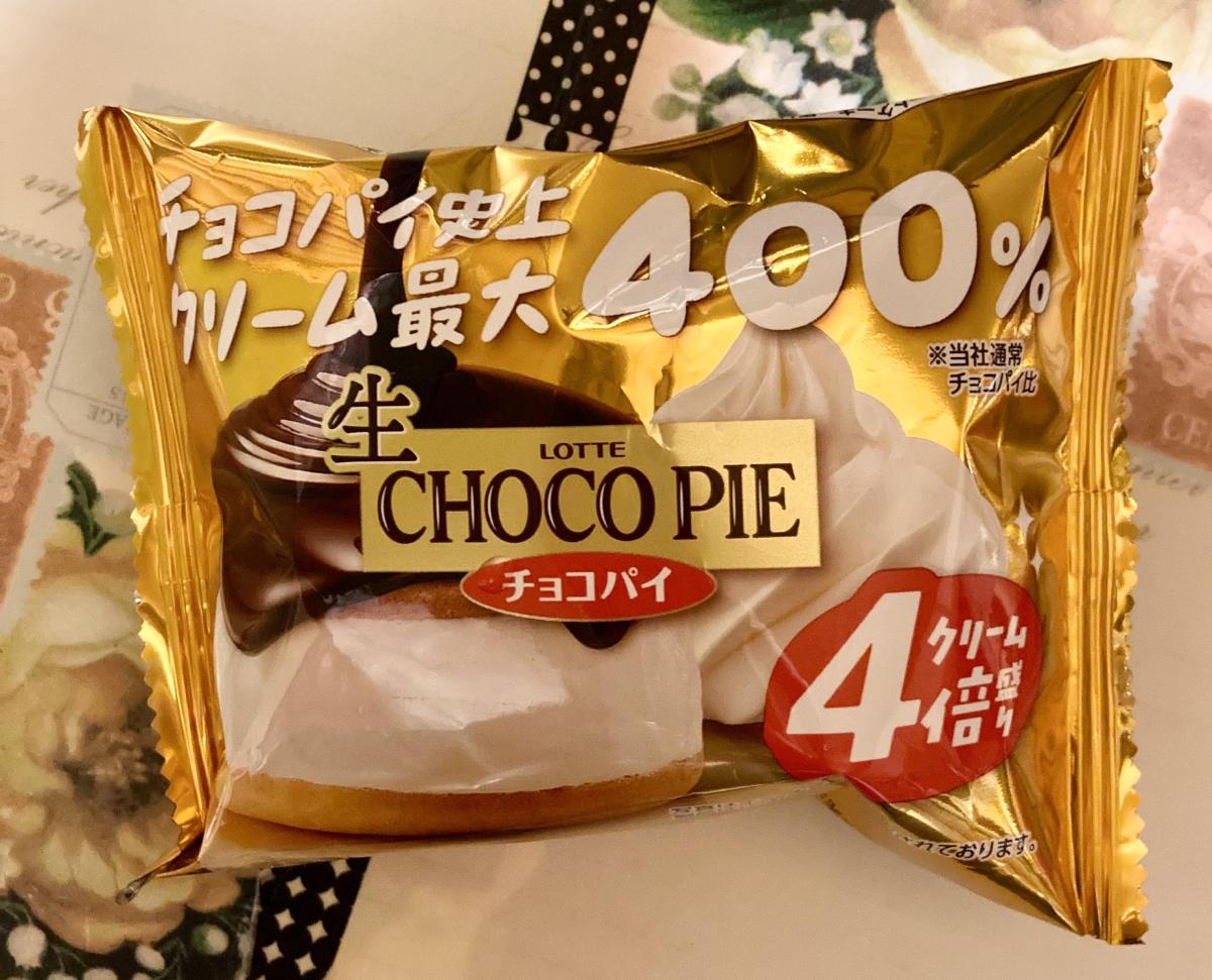 ロッテ 生 チョコパイのクリーム4倍盛りが気になり購入してみました。チョココーティングはなめらか甘めのミルクチョコ風味ですが、後にはカカオ感もあるような味わいで甘くどさは感じませんでした。生地もふわっと軽いので口どけがいいです。しっかりめの甘さで背徳感たっぷりでした。また購入してみたいなと思いました。