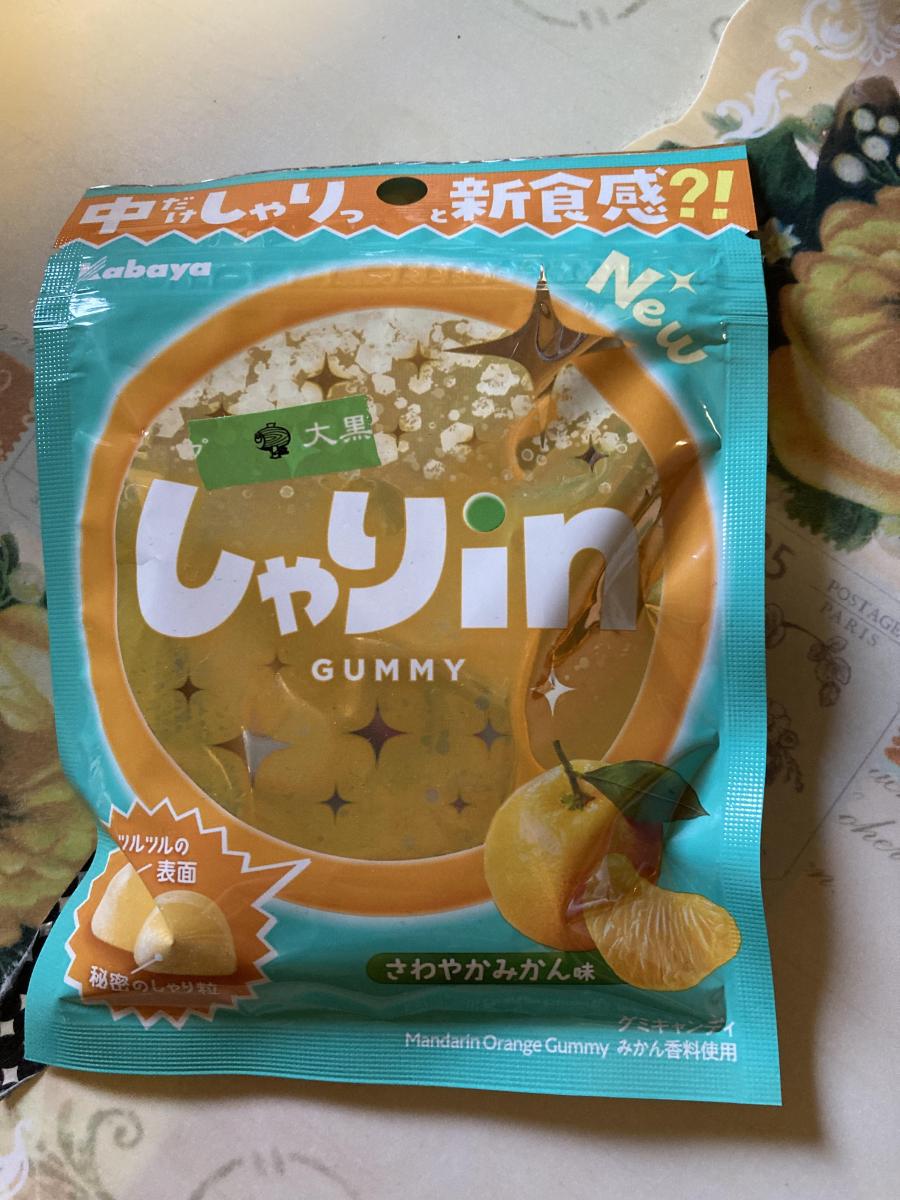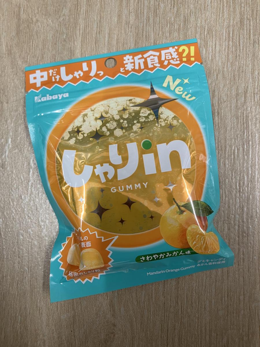 しゃりinグミ さわやかみかん味が気になり購入してみました。表面はツルツルで中は、シャリシャリの新食感が美味しくてなんだかやみつきになります。すっきりとした甘みの中にみかんのほんのり苦味もあってさわやかなみかん味で美味しいです。もっと濃いめな味わいでもいいかなと思いますが、コスパ的にはこれぐらいなのかな?!コスパもいいのでまた購入してみたいなと思いました。