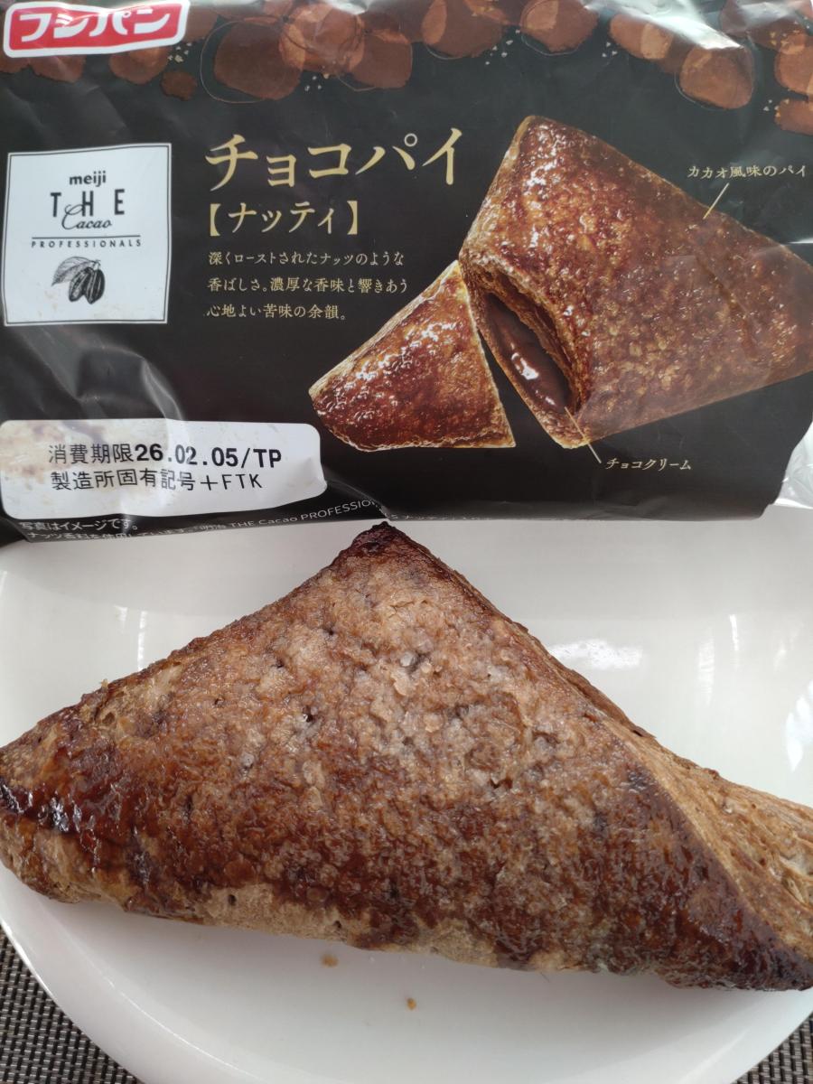 フジパン チョコパイのネーミングに惹かれてどんな味か試したく購入してみました。生地はふんわり層感があるソフトなパイデニッシュ塩味がしっかり感じられほんのりココア風味で美味しいです。チョコクリームはなめらかで、少しぼてっと甘めのチョコ風味でした。ナッツの香りはふんわりとした感じでした。コスパもいいのでまた購入してみたいなと思いました。