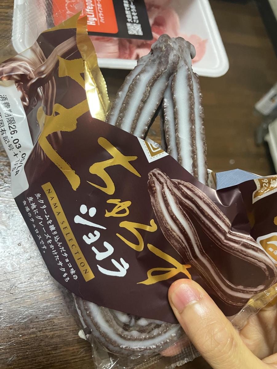 生ちゅろす ショコラ味のネーミングに惹かれてどんな味か試したく購入してみました。少し冷やしてみました。たっぷりかかったグレーズは少しシャリっと感が、優しいチョコ風味のドーナツ生地はみっちりむっちり、普通のチュロスのようなサックリ感はありませんが食べ応えあります。プレーン味よりこちらの方が食べやすい甘さでした。コスパも良いです。