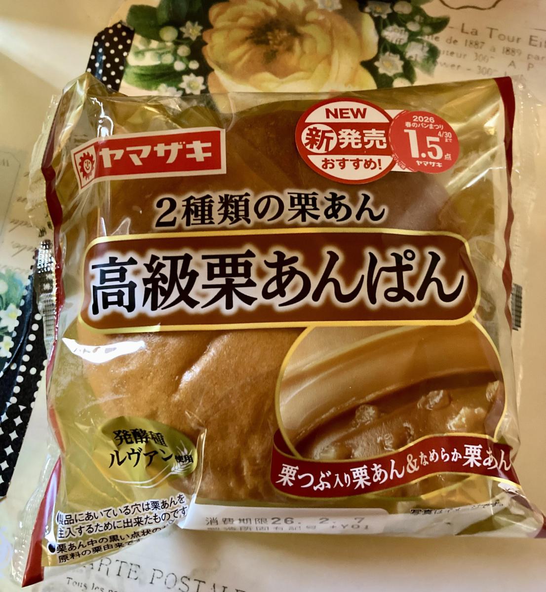 高級がついているパンの、栗あんぱんが発売されていました。2種類の栗あんというのも気になり、ワクワクします。