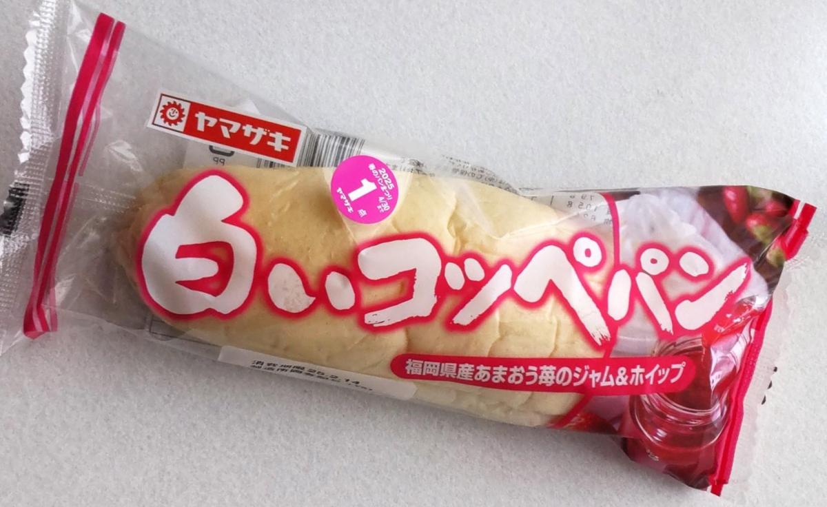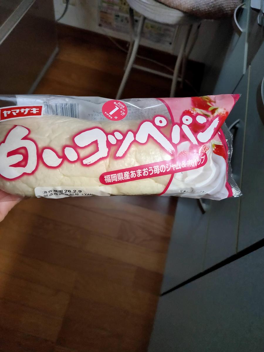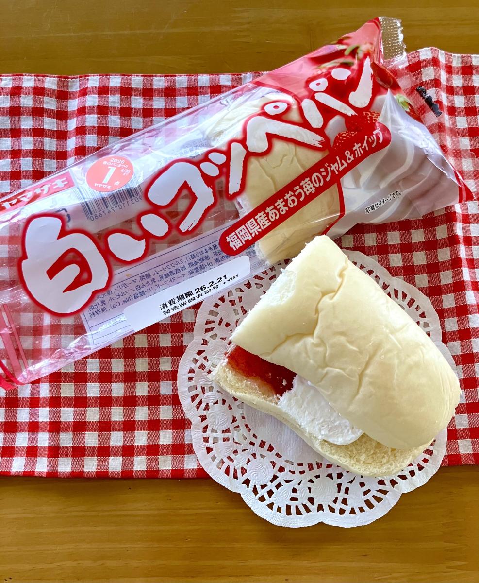 ヤマザキのコッペパンはやわらかくておいしいですが、白いコッペパンはさらにやわらかく、しっとりしていて食べやすくおいしいです。こちらは中にいちごジャムとホイップクリームが入っていました。いちごの甘酸っぱさとホイップクリームのコクが合わさり、マイルドでおいしかったです。ただ、ジャムに対してホイップクリームがやや多かった気がしました。せっかくのあまおうのジャムなのに、ホイップクリームが強いので風味が少し弱まった気がして残念でした。もう少しあまおうジャムメインのほうがあまおうの味を楽しめたかな?と思います。