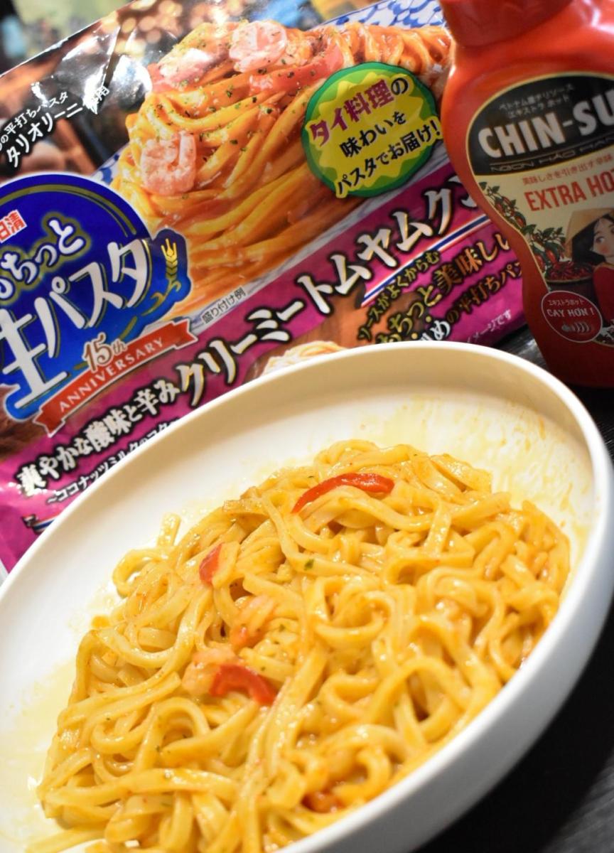 見たらわかる私が絶対好きなやつや!のオーラをびしばし感じるトムヤムクン。パスタ×世界料理は少し前に流行した韓国発のロゼクリームパスタ以来の衝撃かも。トムヤムクンはラーメンとのコラボしかないという思い込みを全力で覆すトムヤムクリームスパゲッティ…しっかり盲点でその手があったか!と心でガッツポーズをしきりに決めました。